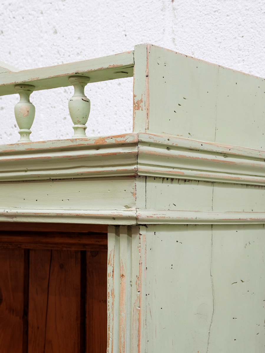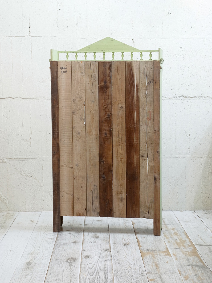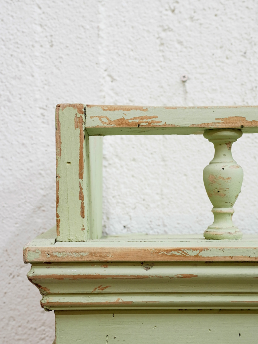 推定1930年代、イギリス製のアンティークペイントシェルフです。ペイントの剥がれがシャビーなシェルフです。ショップ用のディスプレイ棚にもお薦めですし、本棚としてはサニタリー用にタオルなどの収納としてのご使用もおすすめです。ペイントはミントグリーン。子供部屋などにもおすすめです。棚板は全て固定です。棚板内寸 W900 D235 Hそれぞれ300mm。その他ペイント家具はこちらから。