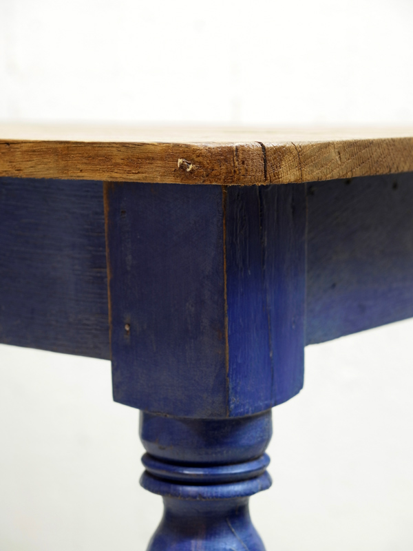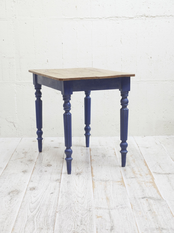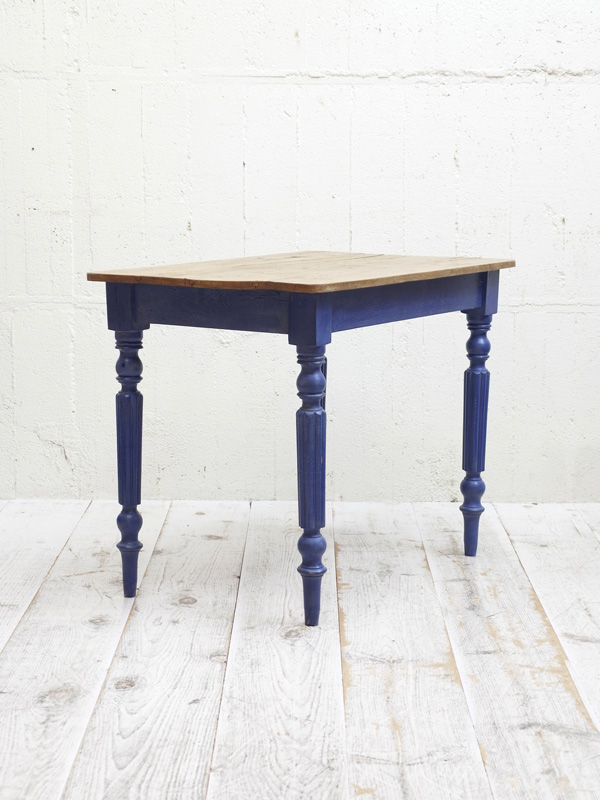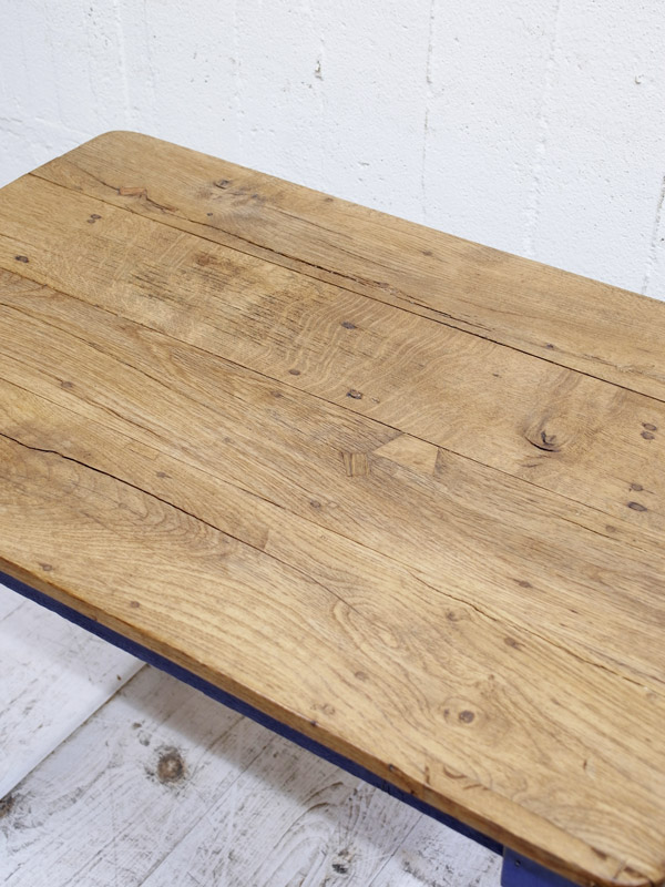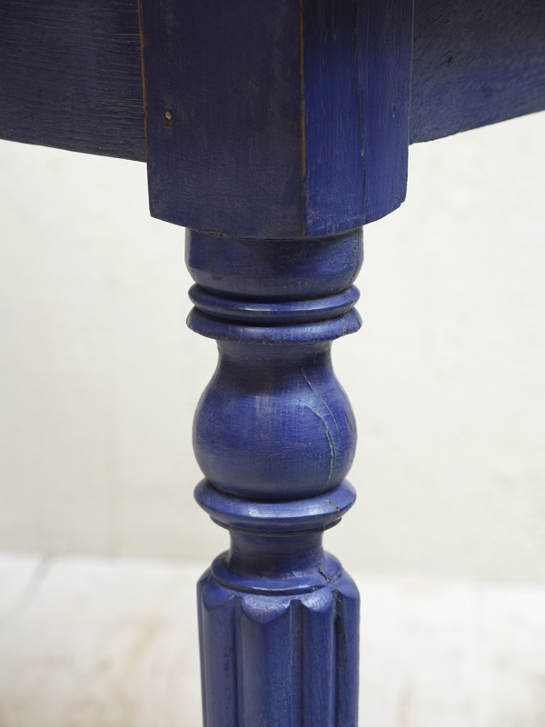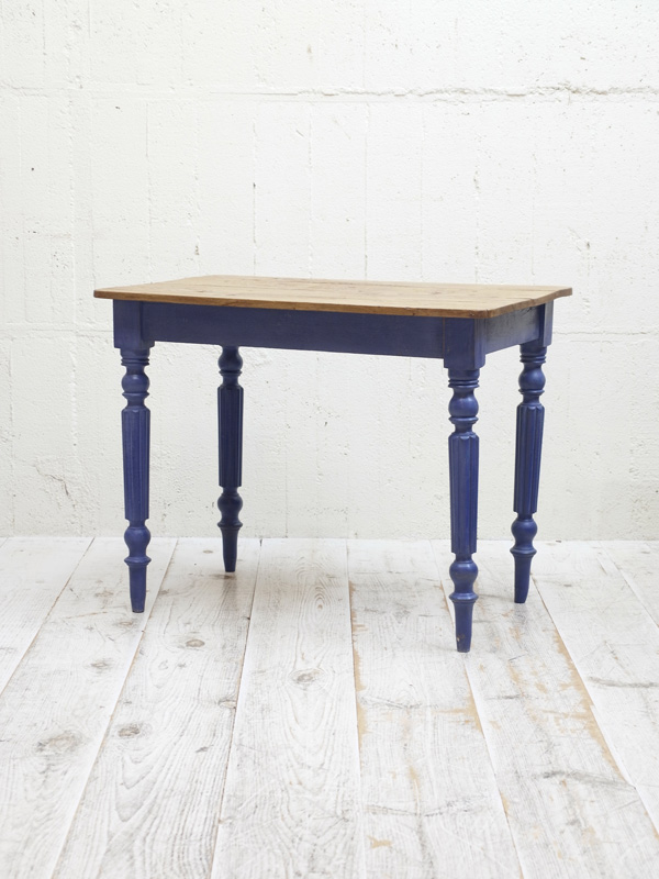 シャビーな風合いの天板と、少しかすんだブルーのペイントが印象的なペイントテーブルです。デスクとしてのご使用もおすすめです。