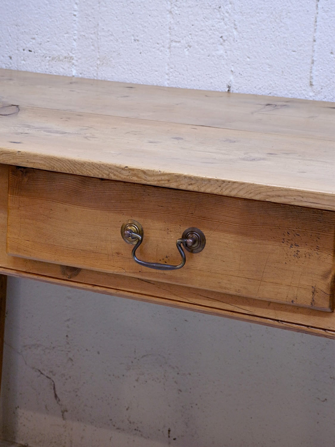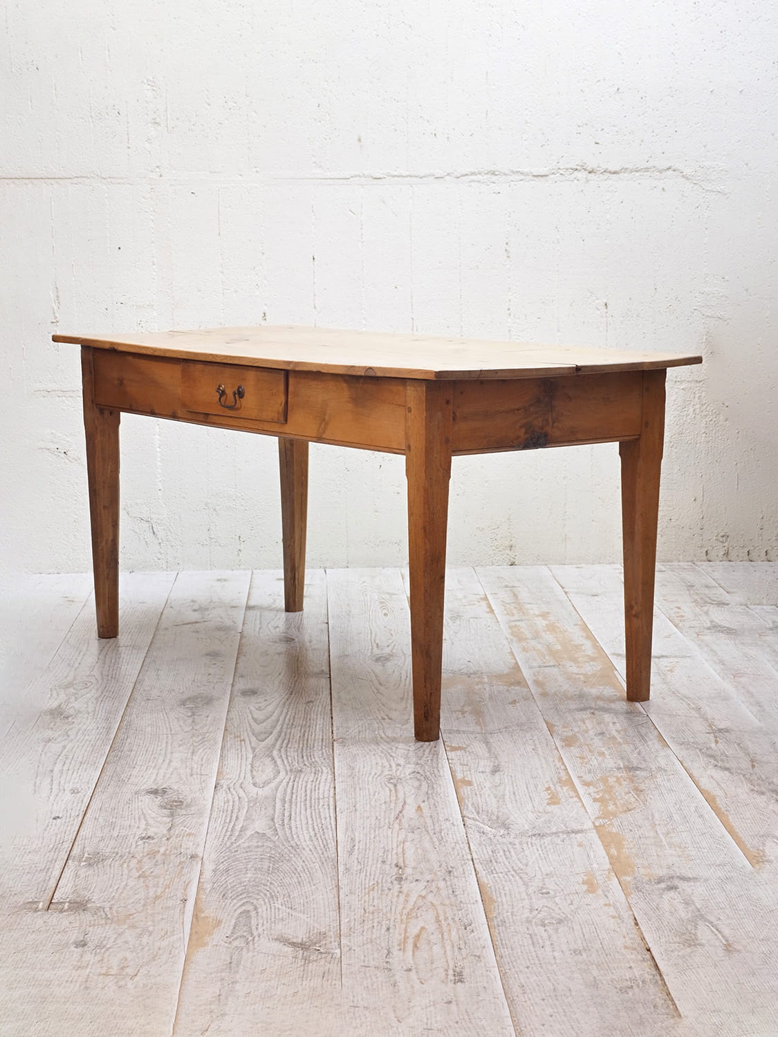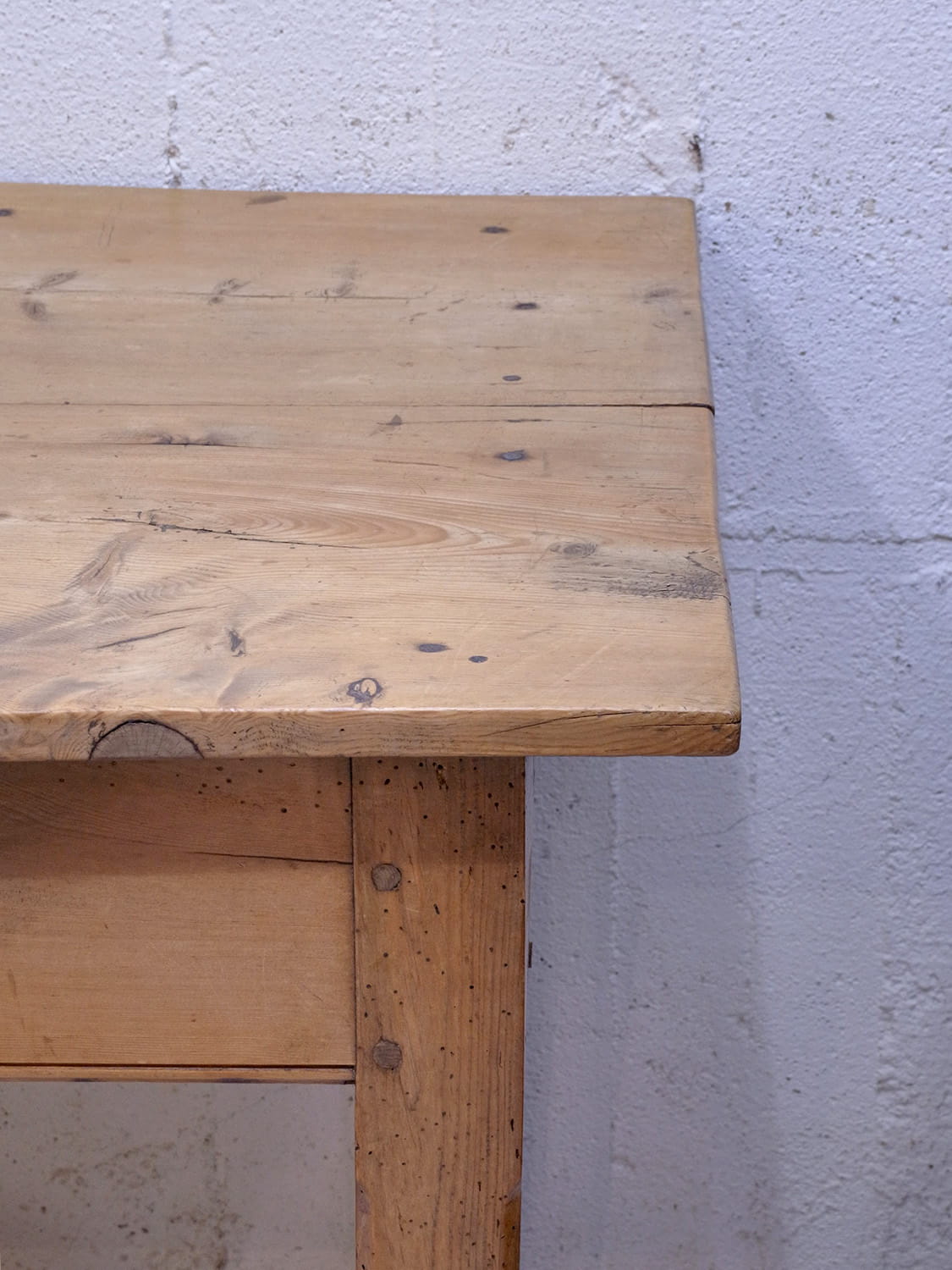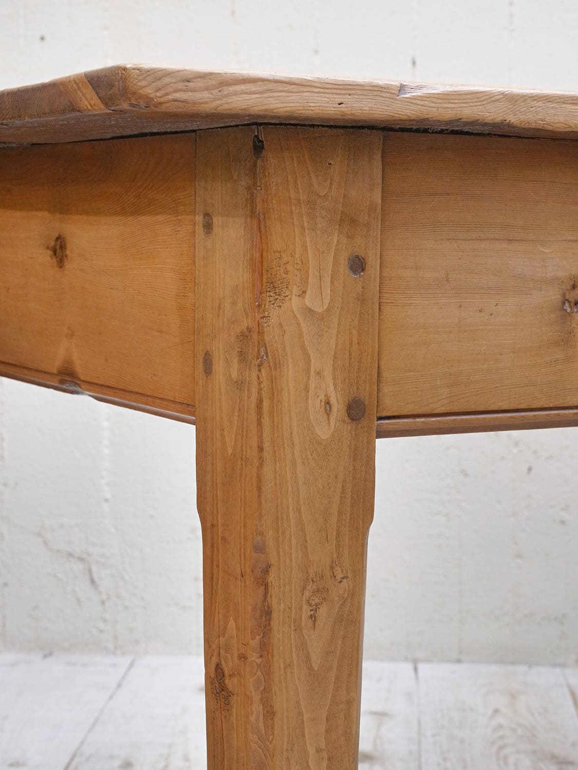 推定1900年代初頭、フランス製のアンティークテーブルです。長手の中央に引き出しが1杯あり、ランチョンマットやカトラリーの収納ができます。天板は2枚接ぎの上質な作りで、現行品ではなかなか作れないぜいたくな作りです。2~4人掛けでのダイニングテーブルとしてのご使用がおすすめです。合わせた椅子(KW90、KV280-7)です。引き出し内寸 W360 D560 H92mm。その他フレンチテーブルはこちらから。