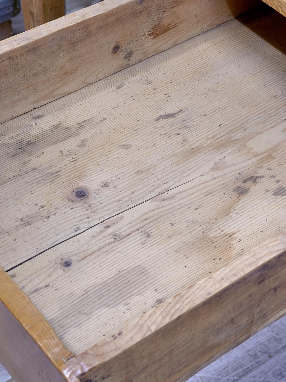 推定1900年代初頭、フランス製のアンティークテーブルです。長手の中央に引き出しが1杯あり、ランチョンマットやカトラリーの収納ができます。天板は2枚接ぎの上質な作りで、現行品ではなかなか作れないぜいたくな作りです。2~4人掛けでのダイニングテーブルとしてのご使用がおすすめです。合わせた椅子(KW90KV280-7)です。引き出し内寸 W360 D560 H92mm。その他フレンチテーブルはこちらから。