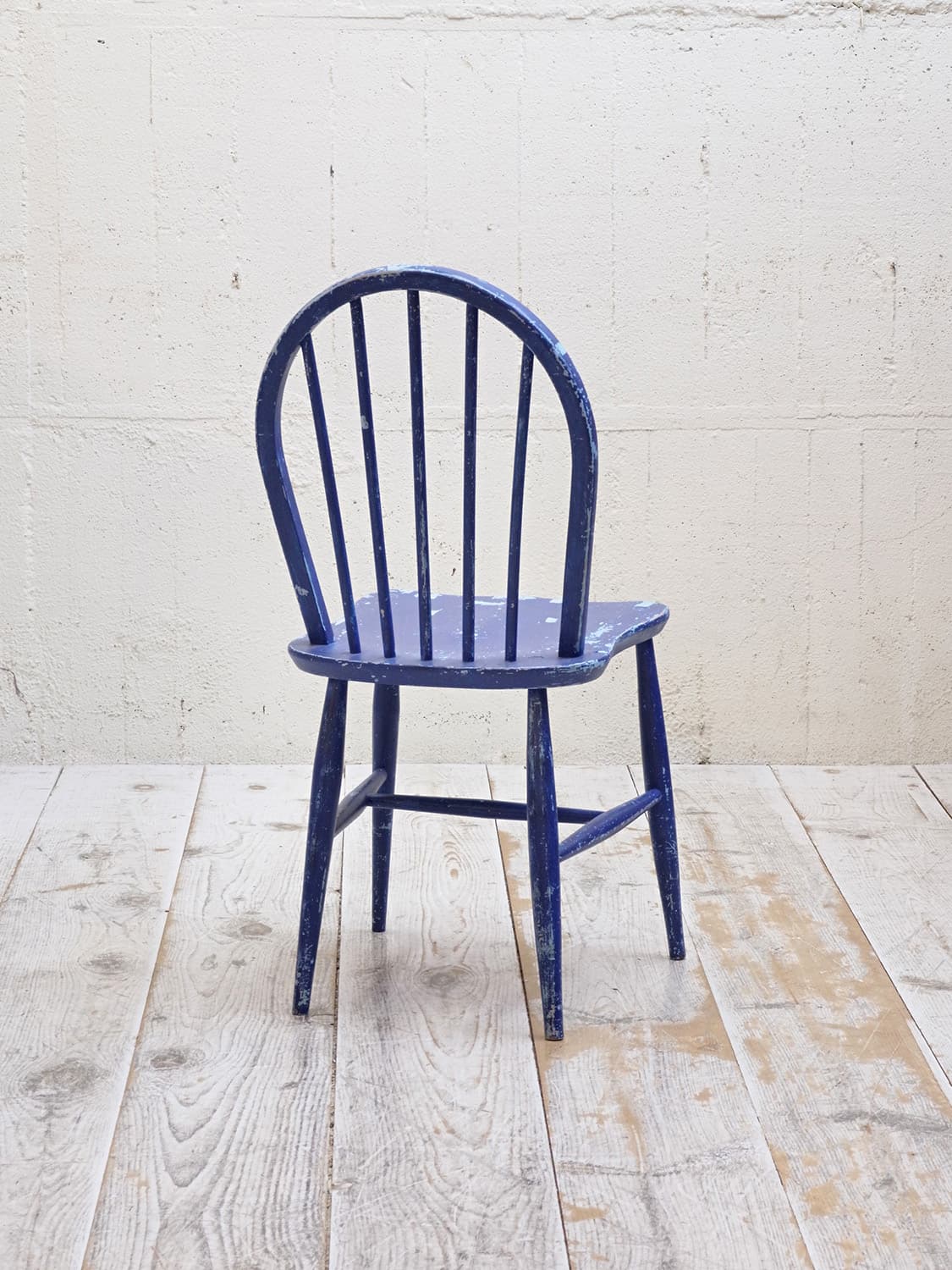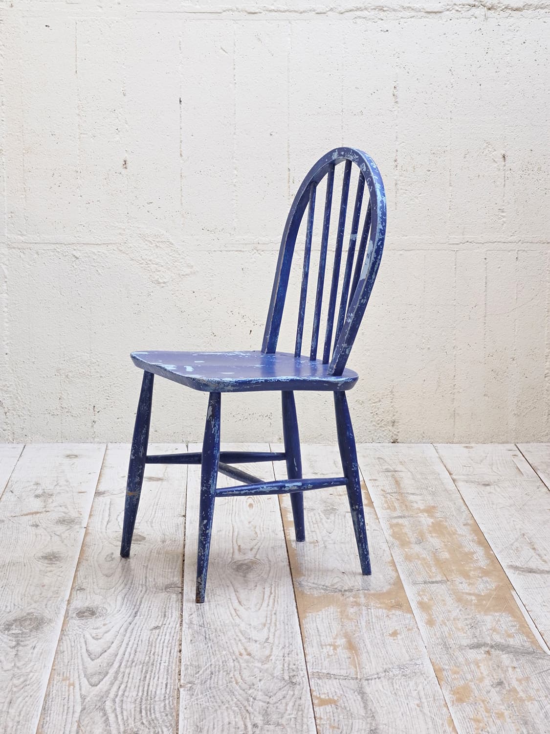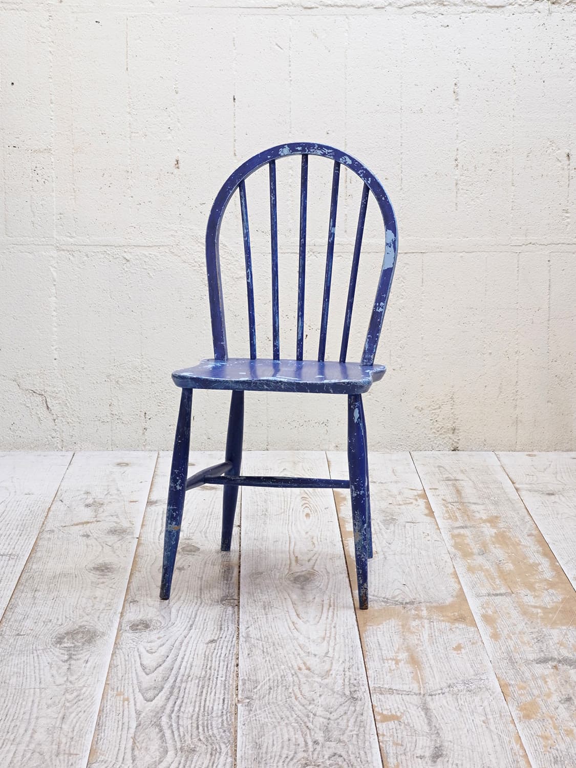 推定1960年代、イギリス製アーコール社のフープバックチェアです。座面はヴァイオリン(ひょうたん)の形をした珍しい形です。水色の上から鮮やかなブルーカラーでペイントされて、所々下地の水色がみえて味わい深い椅子です。その他ペイントチェアはこちらから。