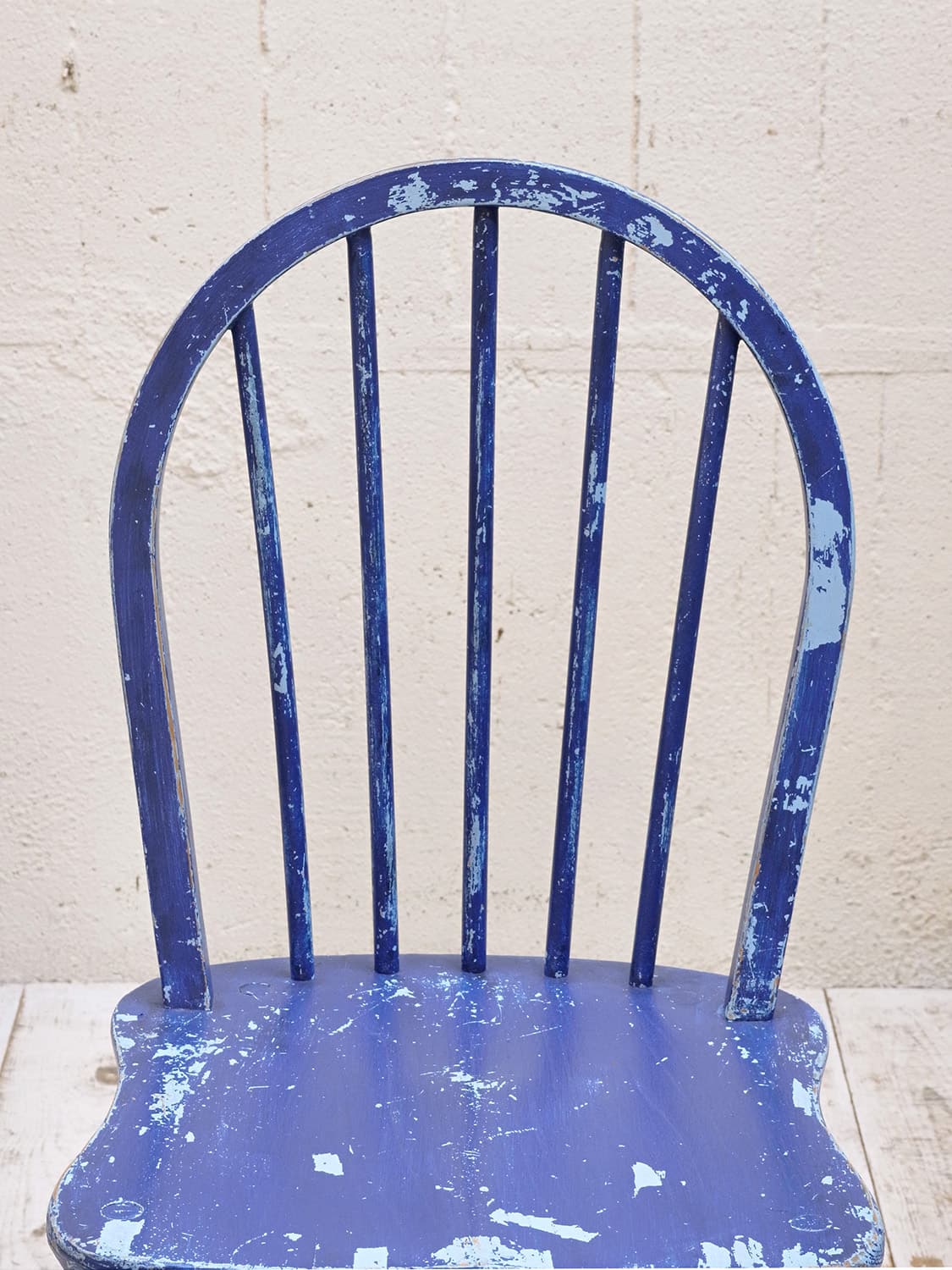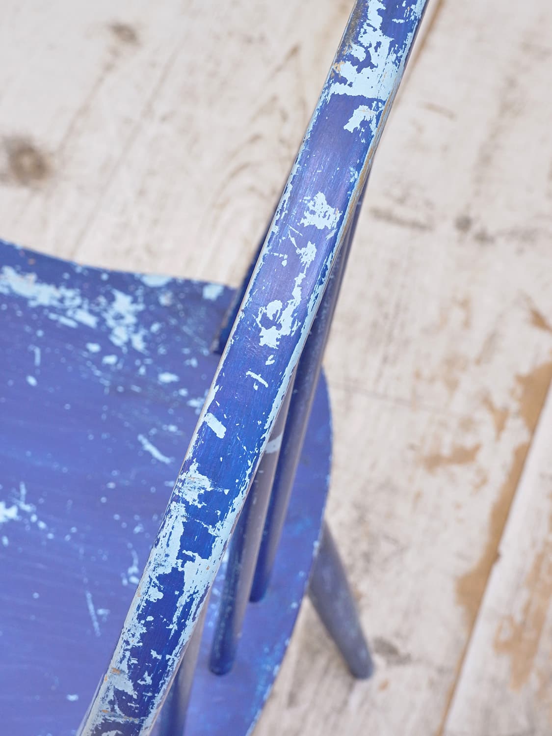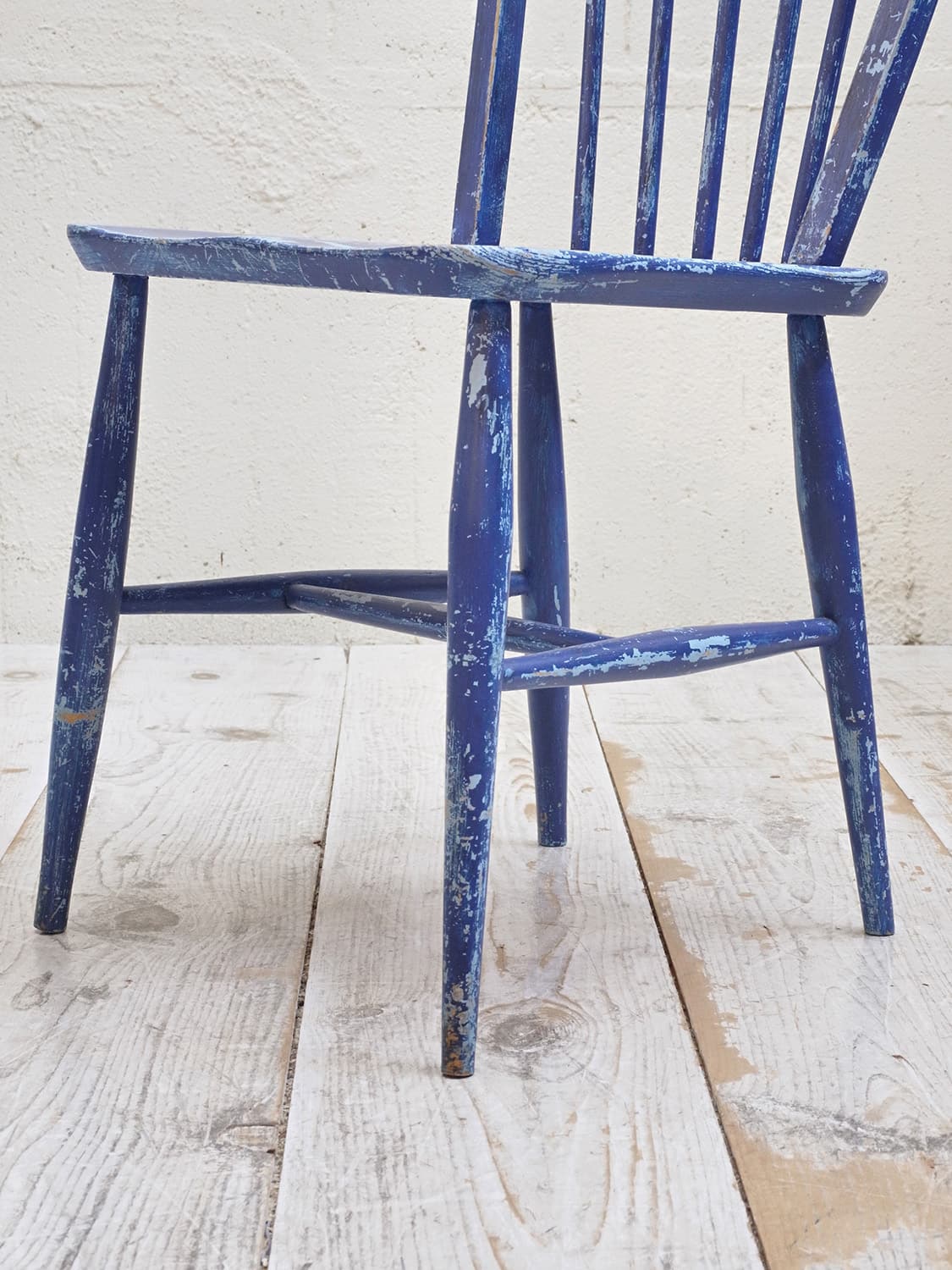 推定1960年代、イギリス製アーコール社のフープバックチェアです。座面はヴァイオリン(ひょうたん)の形をした珍しい形です。水色の上から鮮やかなブルーカラーでペイントされて、所々下地の水色がみえて味わい深い椅子です。その他ペイントチェアはこちらから。