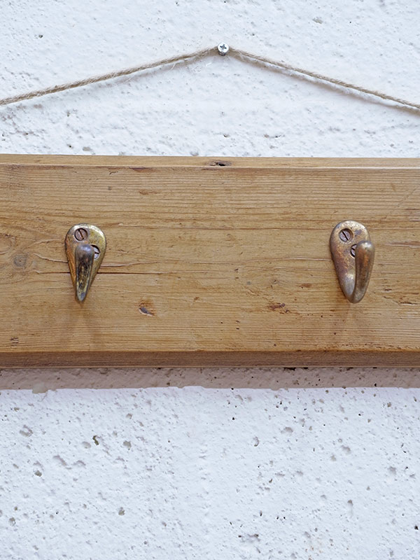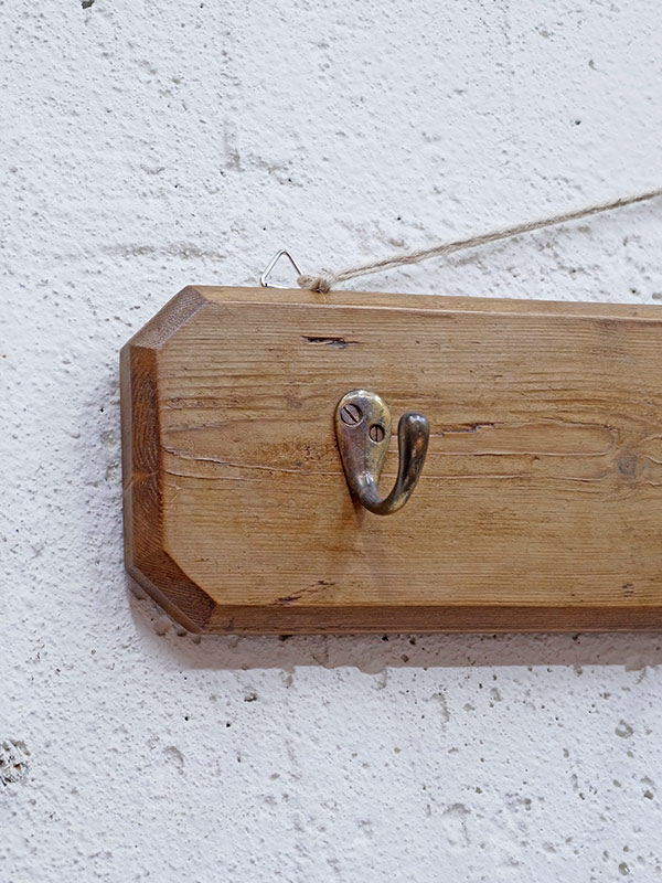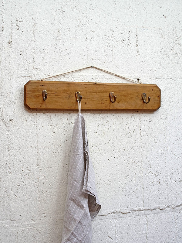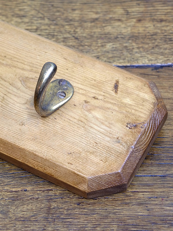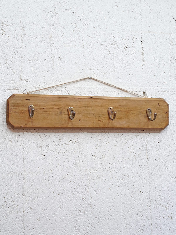 推定1940年代。アンティークパイン板に真鍮のフックが4つついています。