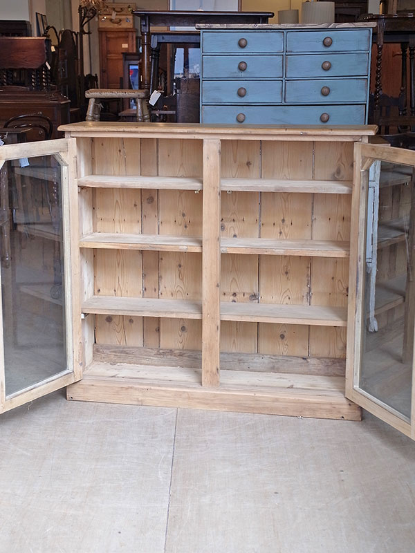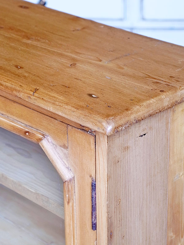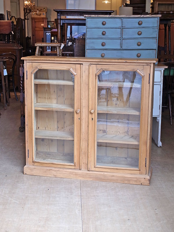 推定1930年代、イギリス製。 扉内寸 W1020 D215 H160/H200/H230/H250 棚板は全て固定式。 食器棚としてもブックケースとしてもお好きな用途にあわせてお使いいただけます。鍵穴は付いていますが、キャッチでの開閉が便利です。