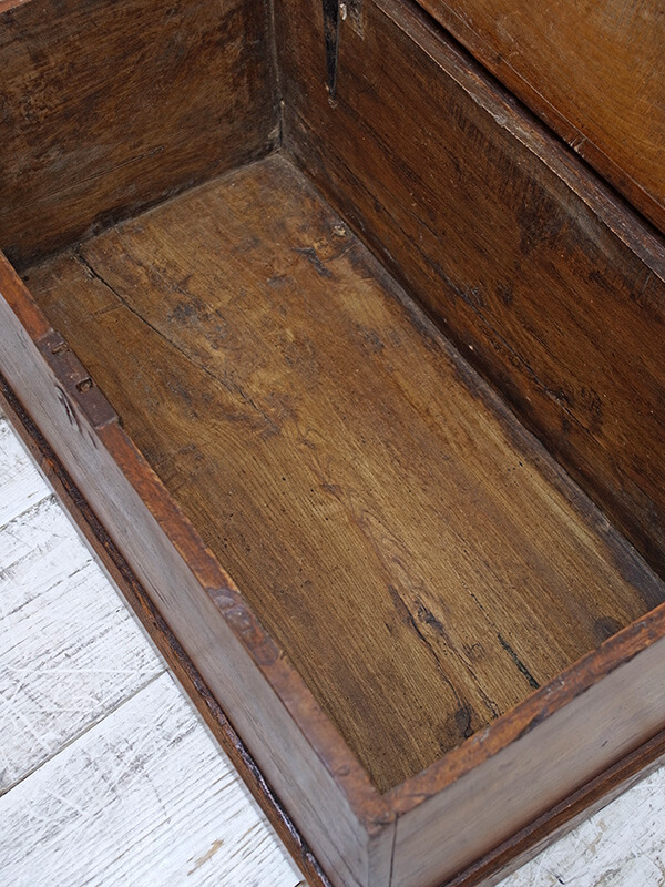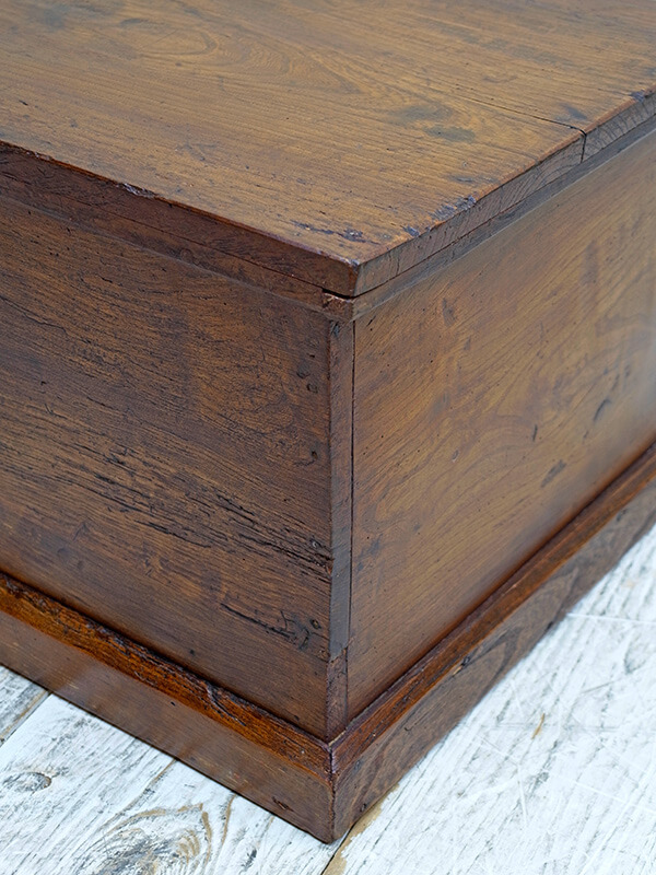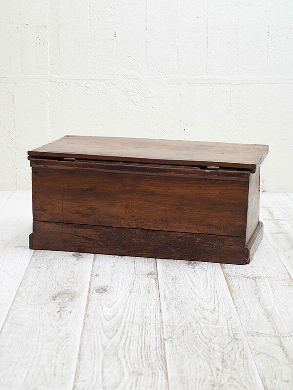 推定1920年代。イギリス製。 木目が味わい深いブランケットボックスです。 コーヒーテーブルとしてもちょうどよい大きさで人気があります。