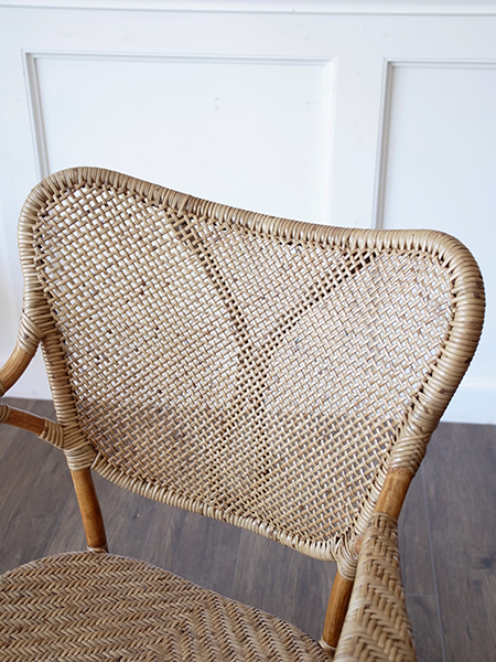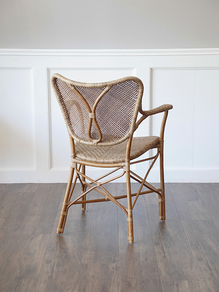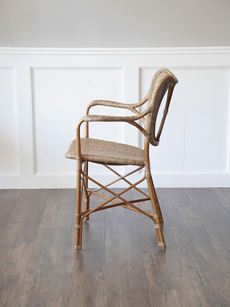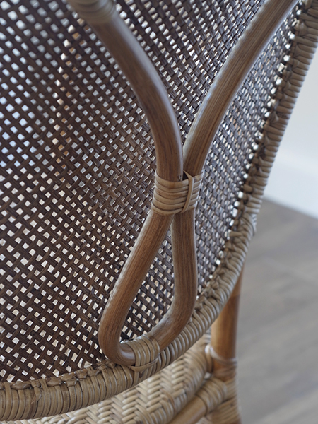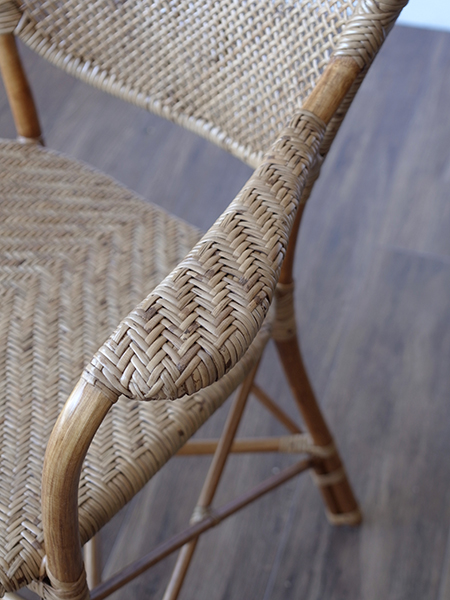 細い籐で編み込まれたオリジナルラタンチェアのアームタイプが登場。 ラタン素材なので軽く、移動も楽です。同シリーズのアームなしチェアもあります。