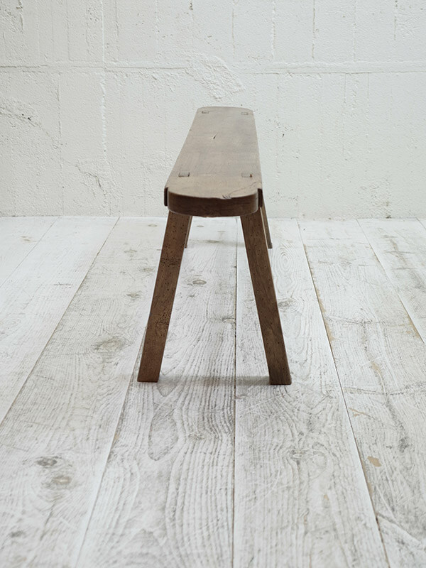 推定1920〜30年代。シンプルなデザインのファームベンチです。曲線デザインの座面が可愛らしく、玄関ホールやテラス、または店舗用としてお薦めです。