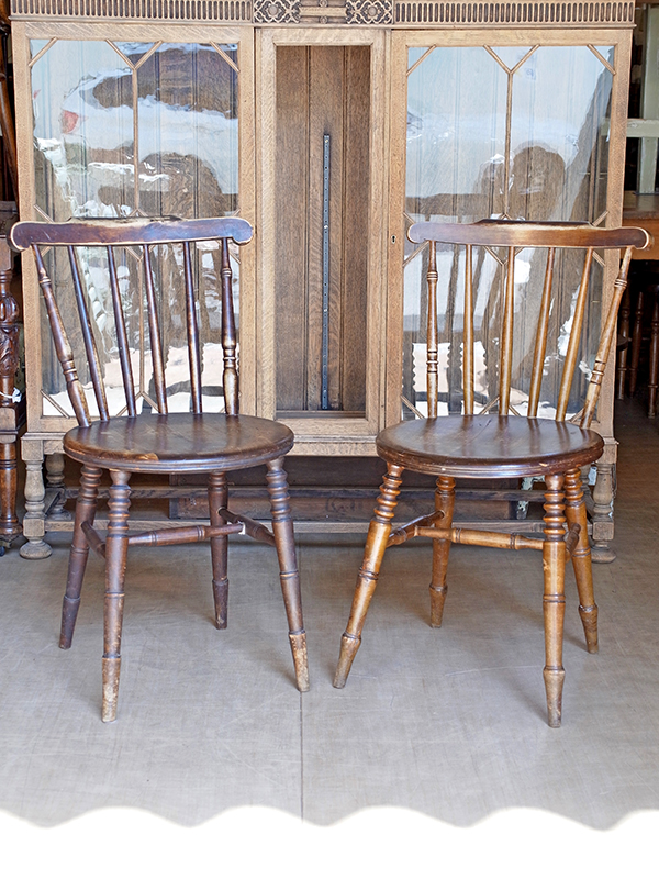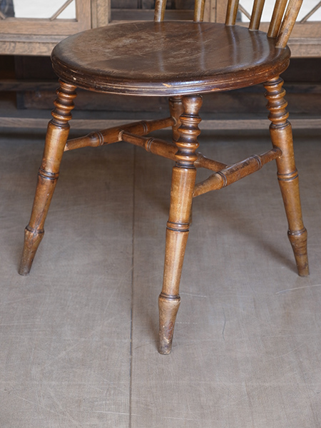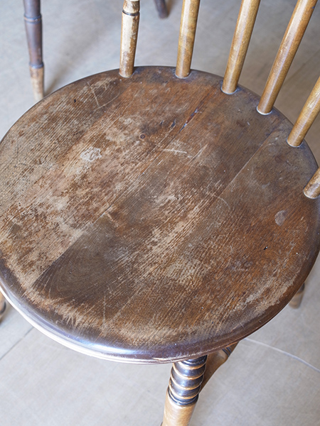 推定1930年代、イギリス製。 価格は1脚の値段です。画像は右側の椅子を撮影しています(d) イギリスの伝統的なダイニングチェアです。 その他キッチンチェア一覧はこちらから。