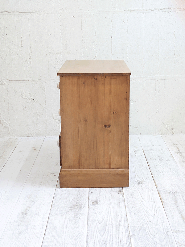 推定1920年代、イギリスアンティークオールドパインチェストです。内寸上W390 D385 H130 下W820 D385 2段目H175 3段目195.