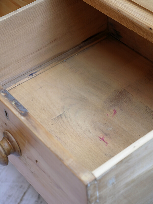 推定1930年代、イギリス製。 上の引き出し内寸 W345 D315 H140 下の引き出し内寸 W735 D315 H160-190