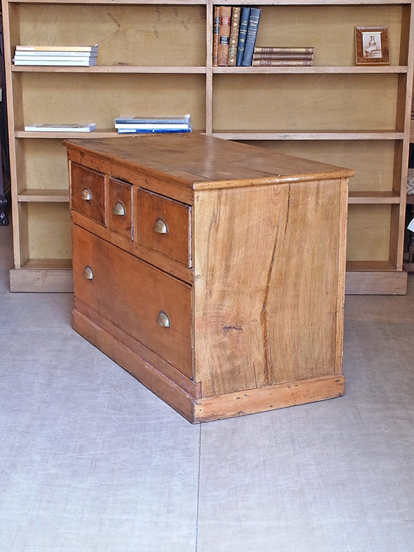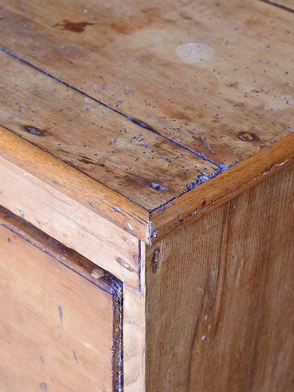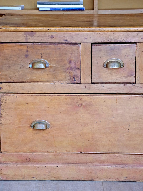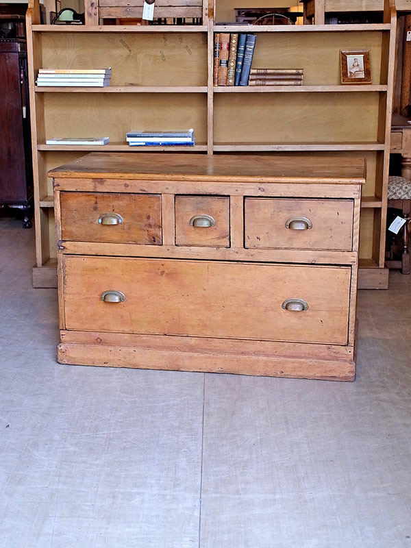 大きな引き出しが4杯も付いたアンティークパインチェストです。