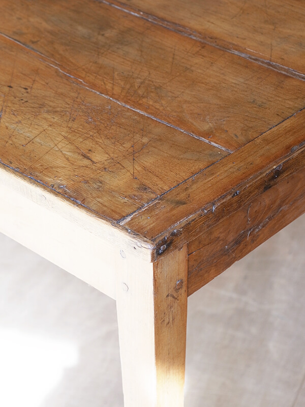 華奢なストレートレッグが印象的なフレンチテーブルです。とても軽く移動も楽に行うことができます。ゆったり二人掛けのダイニングテーブルにも、作業台としてもご使用いただけます。