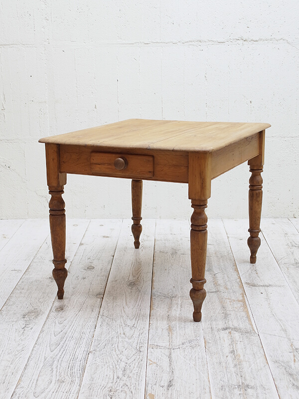 推定1920年代、イギリス製。 ほぼ正方形のダイニングテーブルです。2人でゆったりとご使用いただけるサイズです。 引き出しの内寸 W255 D375 H60ミリ