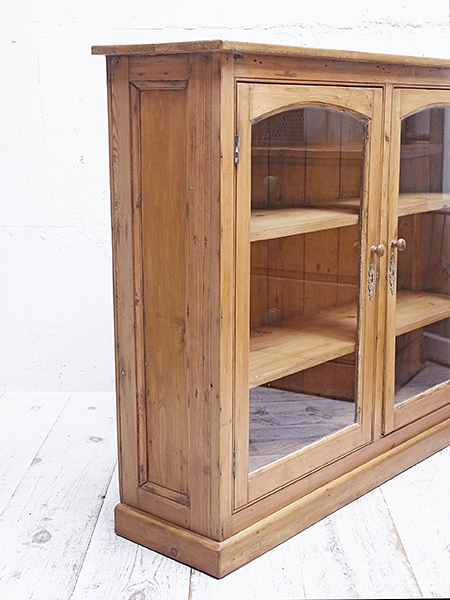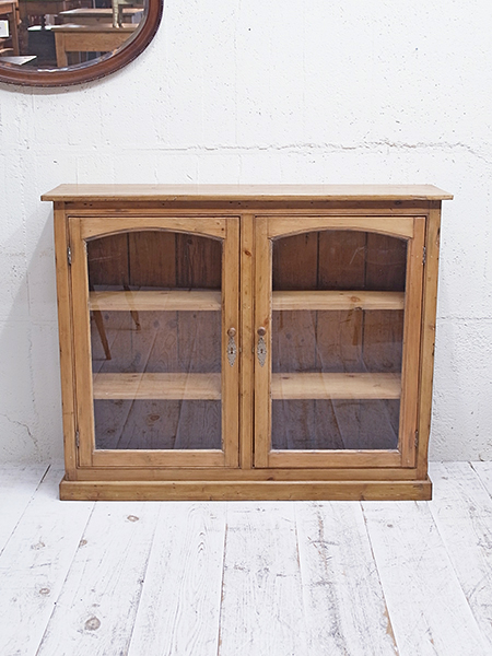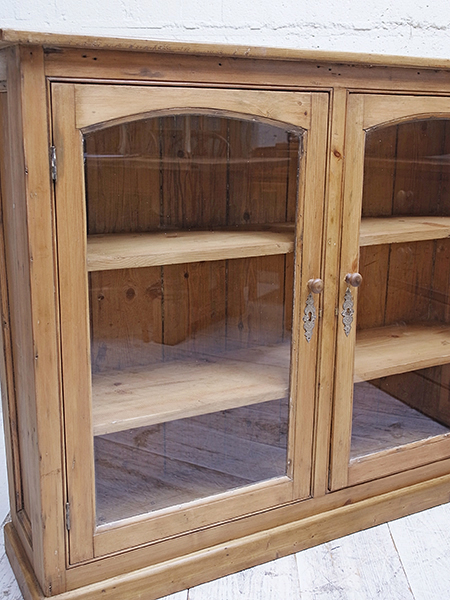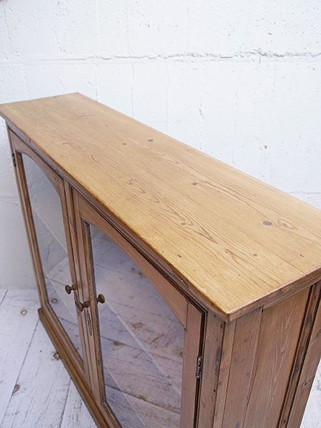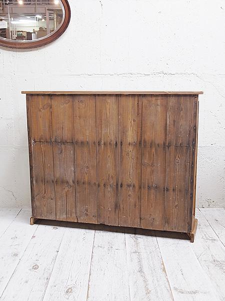イギリス製 推定1920年代 内寸は、幅:1130mm 奥行:255mm 高さ:上段より240mm、285mm、260mです。 棚板は固定式ですが、ご希望によって高さは調整いたします。