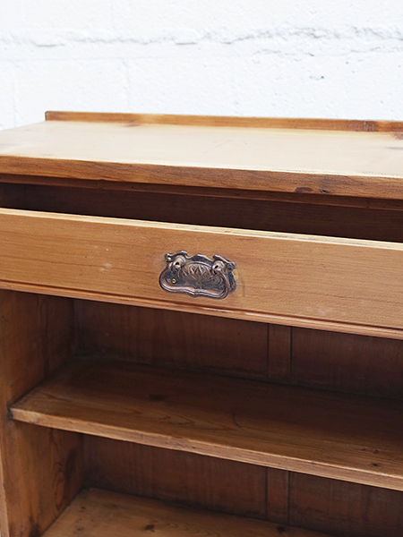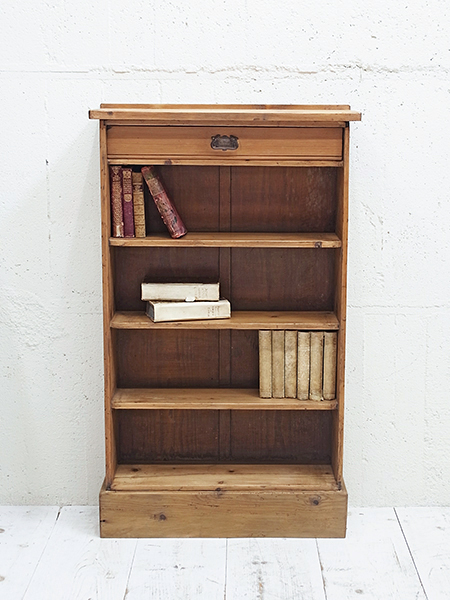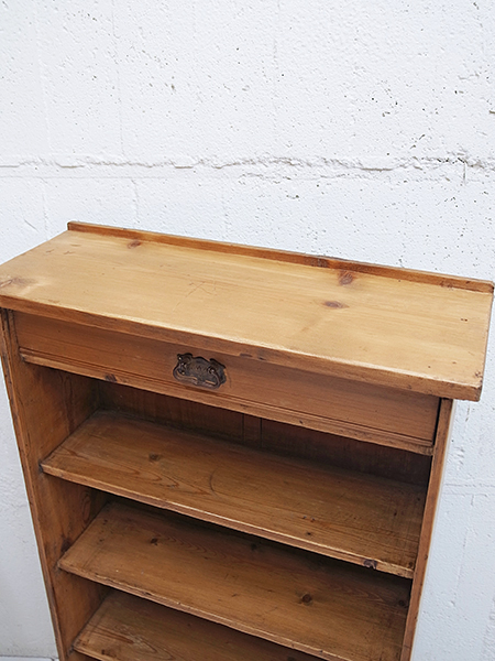 イギリス製 推定1920年代 棚板は固定式です。 棚間隔は上段より180mm,190mm,190mm,190mmです。