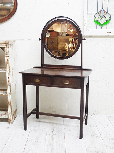 イギリス製 推定1930年代 天板までの高さは765mmです。 ミラーが少し劣化していますが、それもいい雰囲気です。 ご希望によって交換もできます。(別途見積もり)