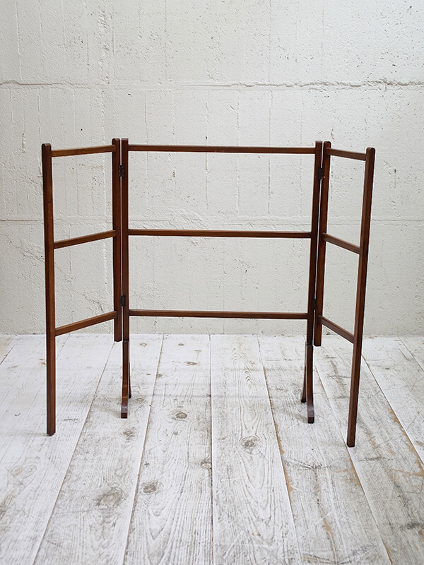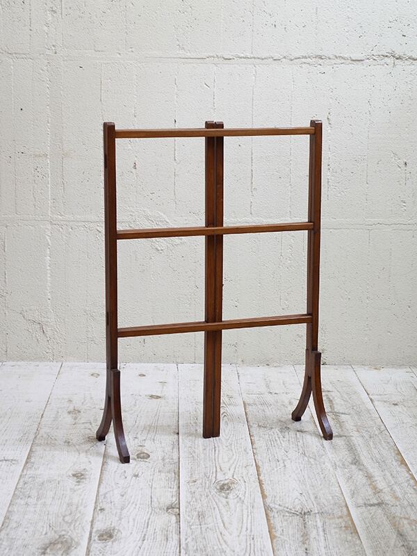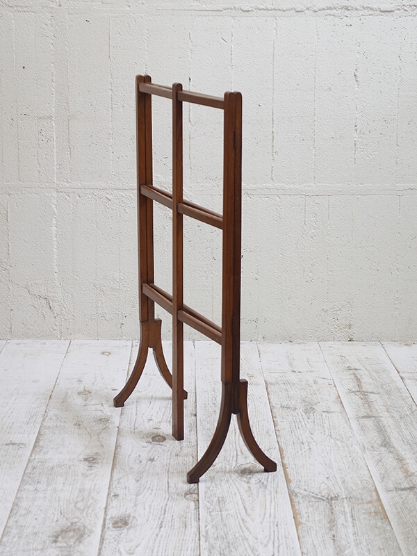 推定1920年代、イギリス製。 シンプルなタオルレールは折りたためて収納できるので邪魔にならず、ブランケットなどを掛けたり、ハンガーに吊るしたジャケットなどをかけておくこともできます。