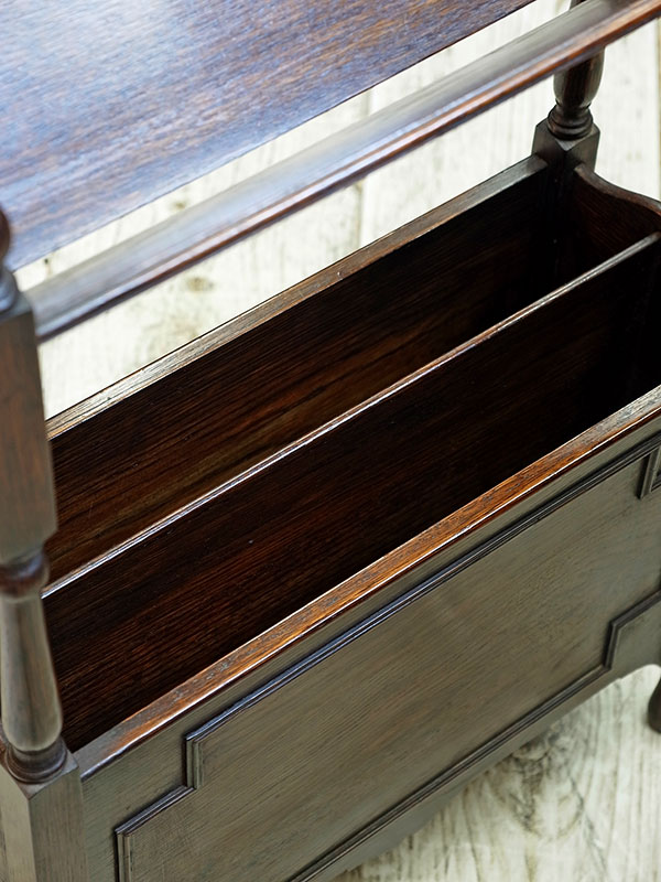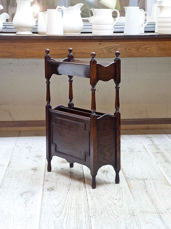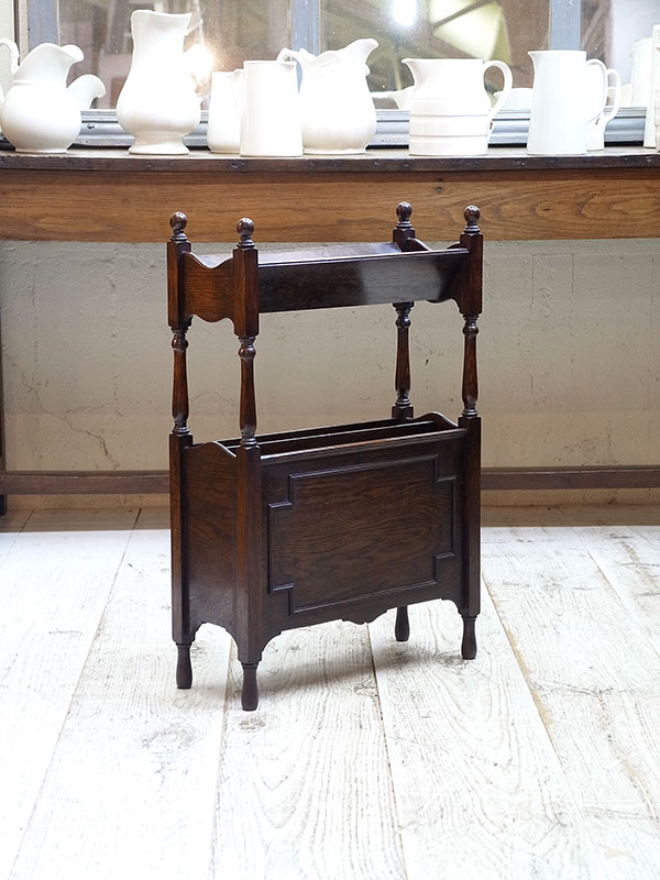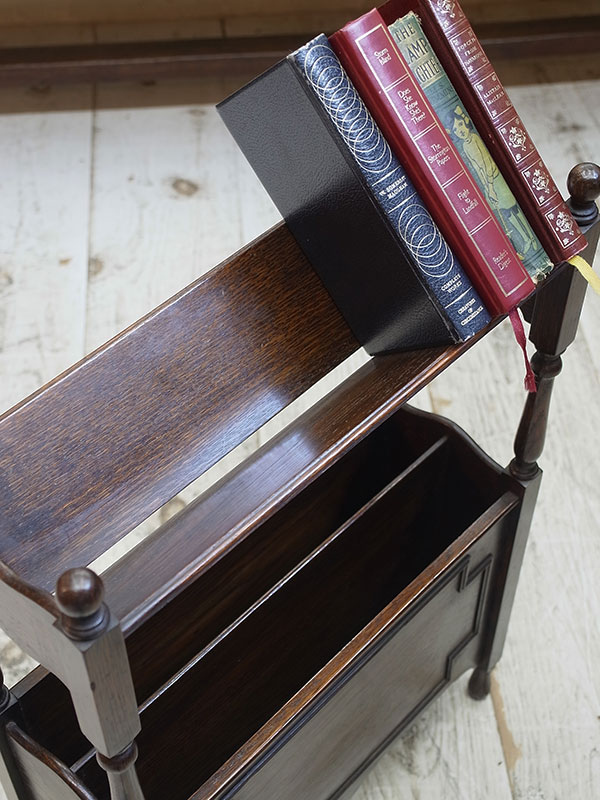 推定1930年代、イギリス製。 上部の棚には文庫本サイズの本を、下の仕切りには雑誌などの大型本の収納が出来ます。機能的でありながら、装飾性もあるのでインテリアに彩りを添えてくれるアイテムです。