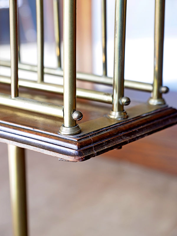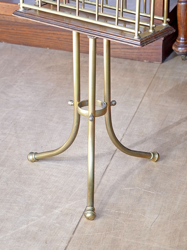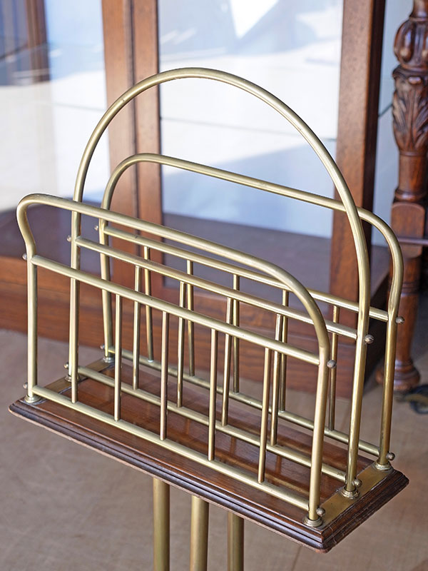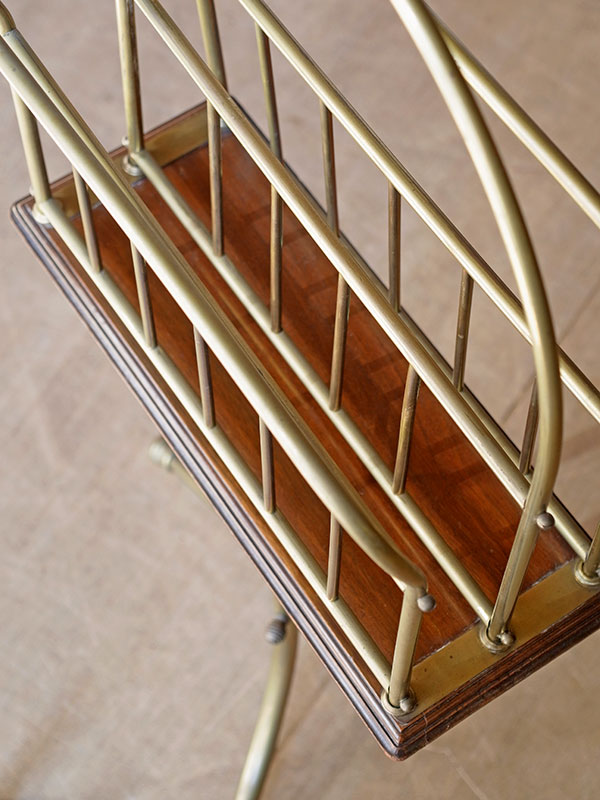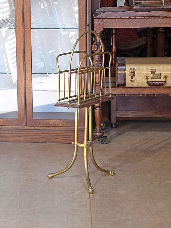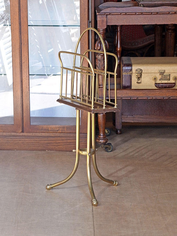 推定1930年代、イギリス製。 真鍮で出来たマガジンラックは雑誌や新聞の収納に最適です。上部は回転するので取り出く、取っ手と脚が付いているので移動が楽に行えます。ソファサイドやベッドサイドにおすすめです。