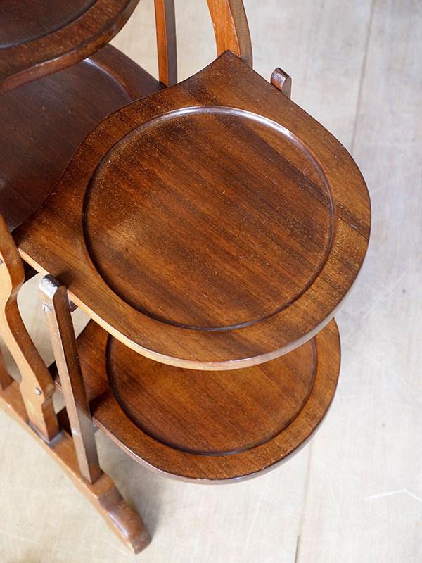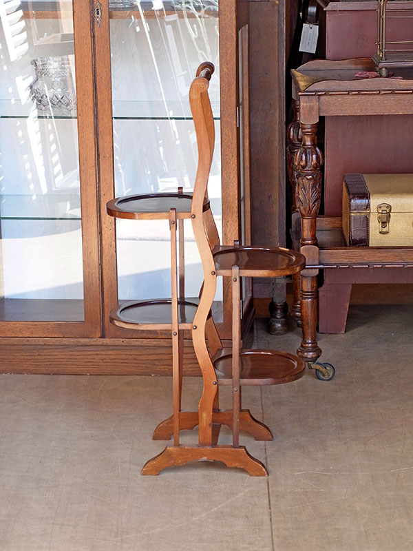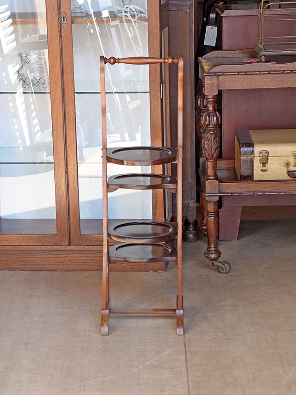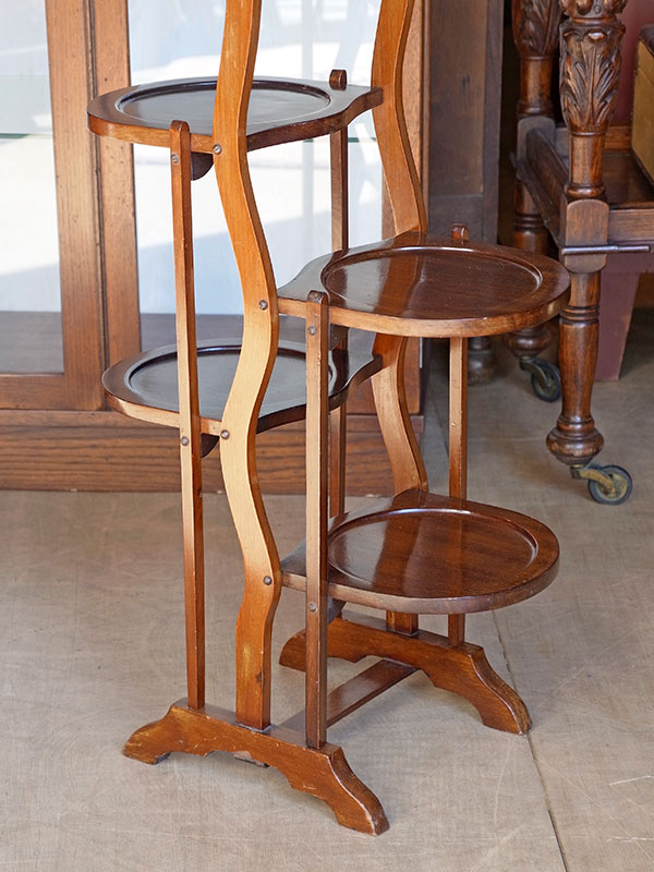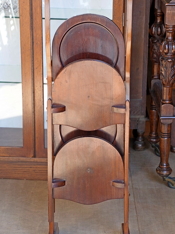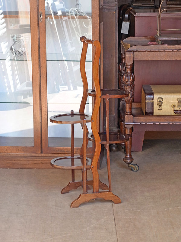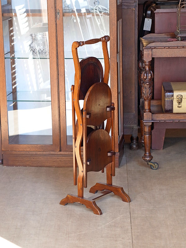 推定1920年代、イギリス製。 折りたたんだ状態の時のサイズ W275 D265 H805ミリ ちょっとしたグリーンや小物のディスプレイスタンドとして使っても良さそうです。