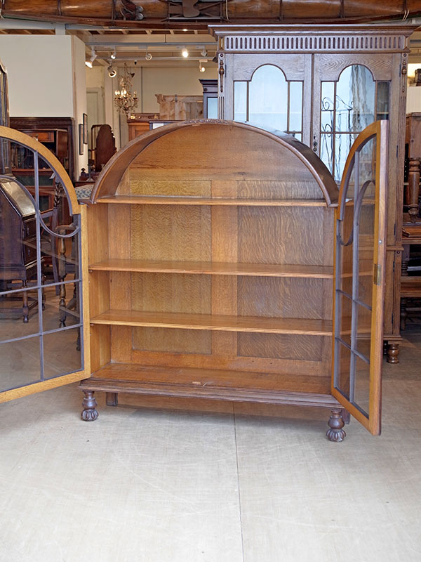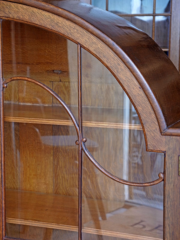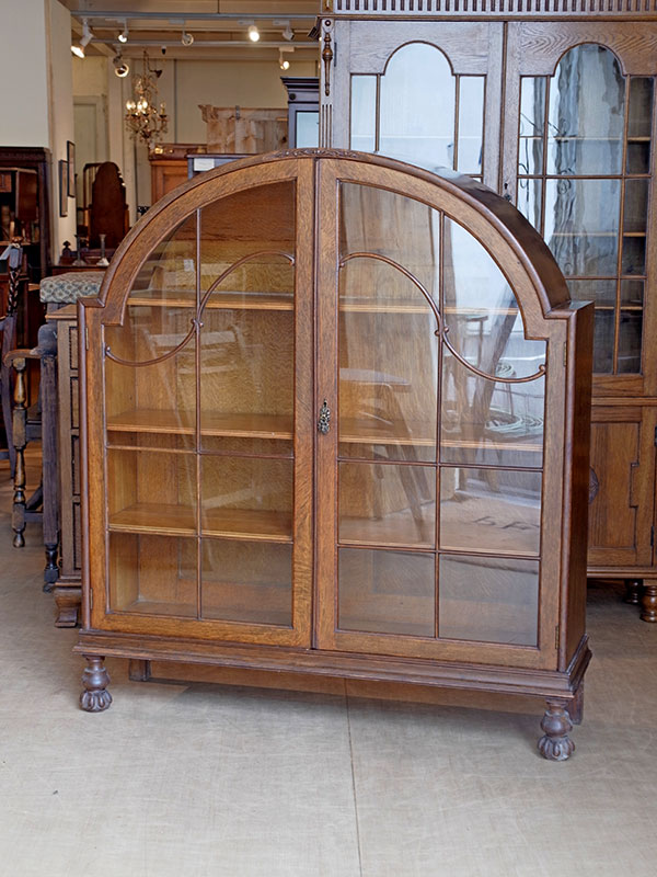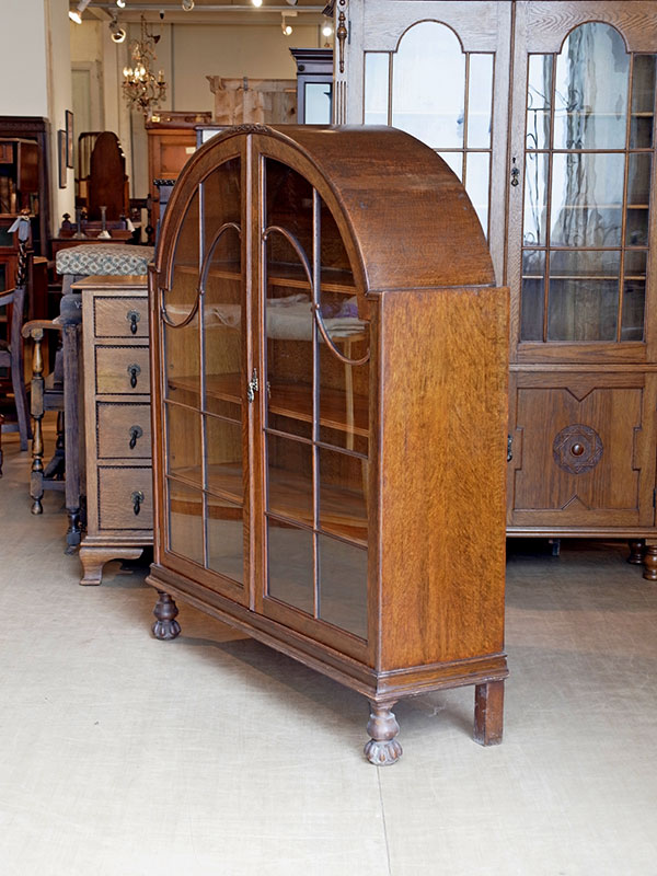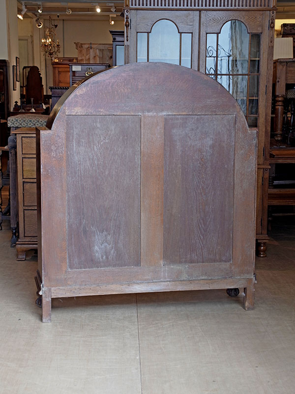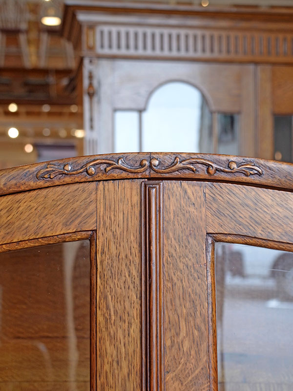 推定1930年代、イギリス製。 扉内寸 W1040 D285 H330 (1段目固定) 2段目3段目 W1160 D270 H6?ピッチ アールデコのデザインが引き立つオークキャビネットです。奥行も幅もしっかりあるので収納量があります。