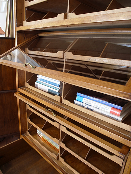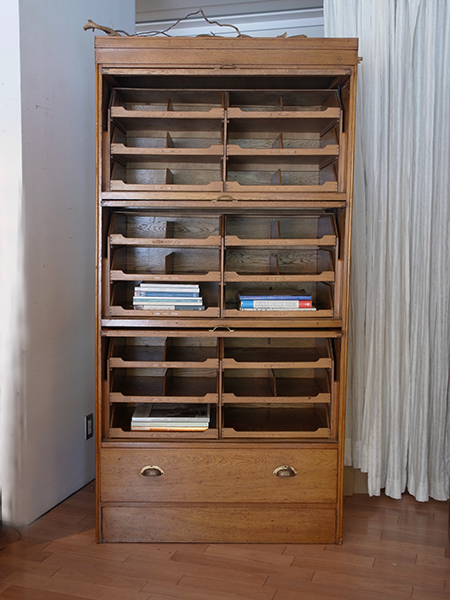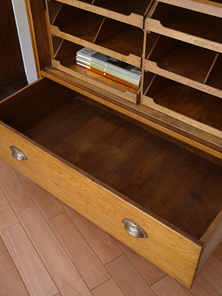 引き出しの有効寸法 W420 奥行455 高さ130 真ん中に仕切りがあるものとないとあります。 書類、洋服、食器など様々の物の収納できます。ガラス扉が上に開くタイプです。