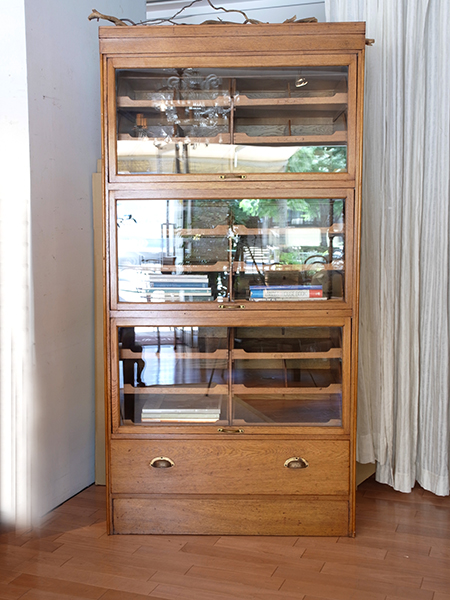 書類、洋服、食器など様々の物の収納できます。ガラス扉が上に開くタイプです。