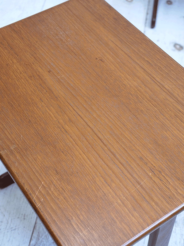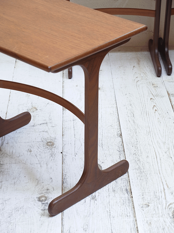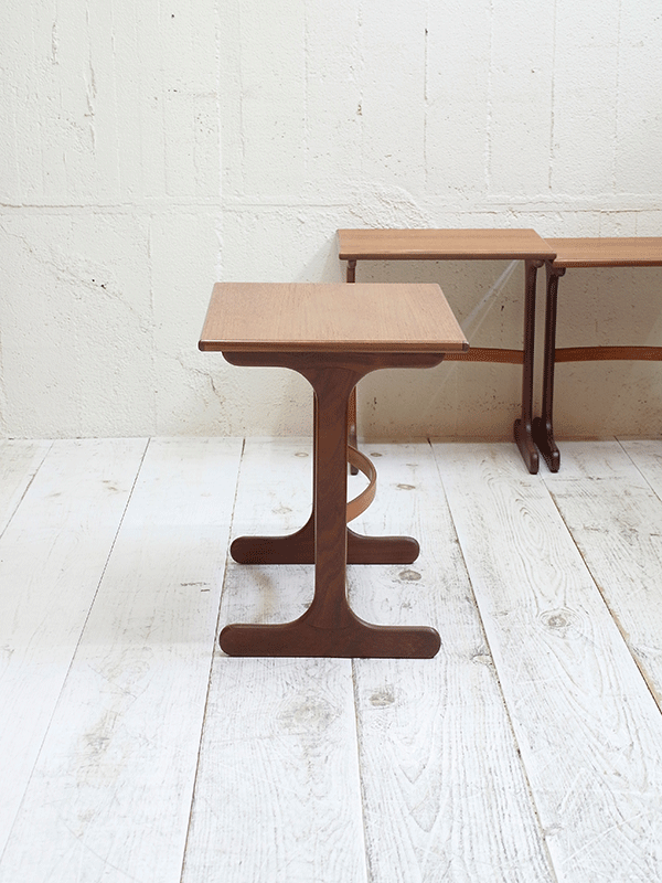 推定1960年代、イギリスG-planネストテーブルです。G-planはスカンジナビアン・デザイン(北欧のスタイル)の影響を色濃く受けたの家具ブランドです。シンプルなデザインでどんなお部屋にも合わせやすいです。大きな傷が無く、状態も良好です。