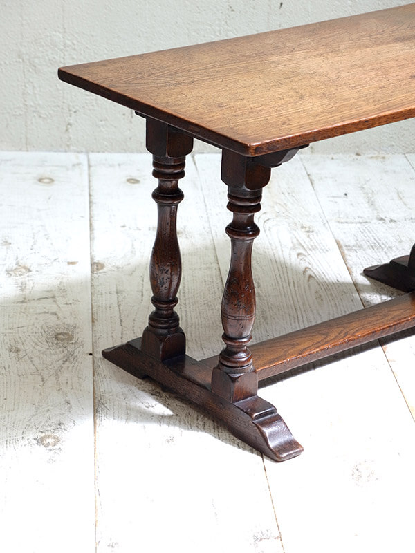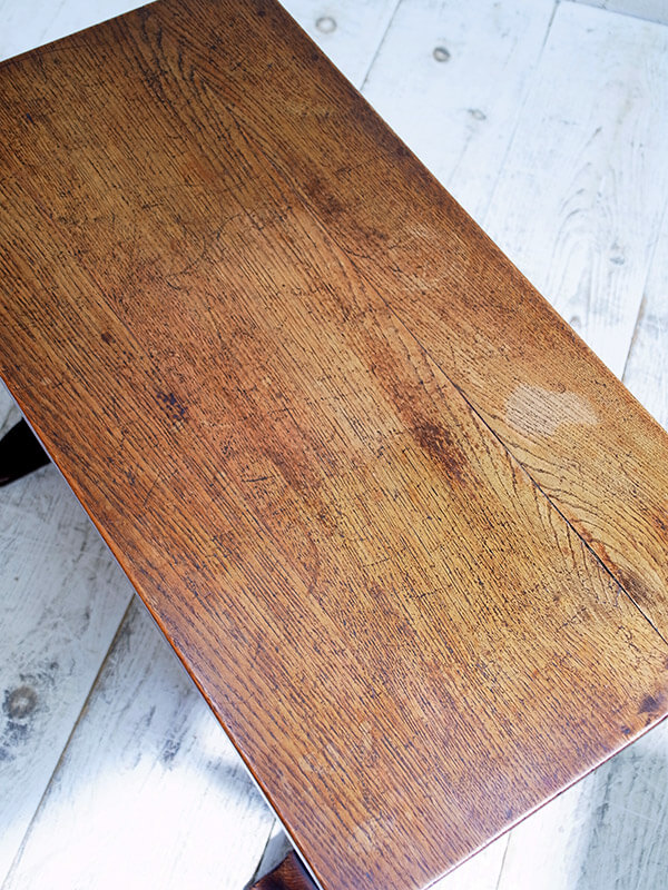 推定1920〜30年代。イギリス製。オーク材。人気のある長方形タイプのコーヒーテーブルです。小ぶりなので1.5人掛けや2人掛けソファに合わせやすいサイズです。