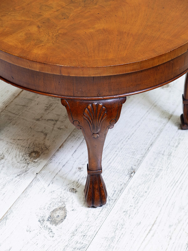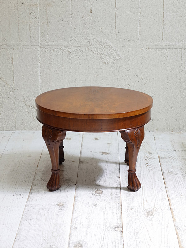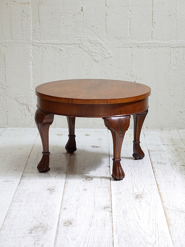 推定1930年代、イギリスアンティークウォルナットコーヒーテーブルです。小ぶりなサイズ感で置く場所を選びません。