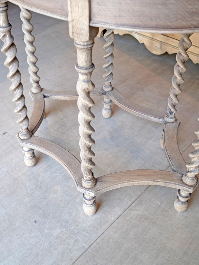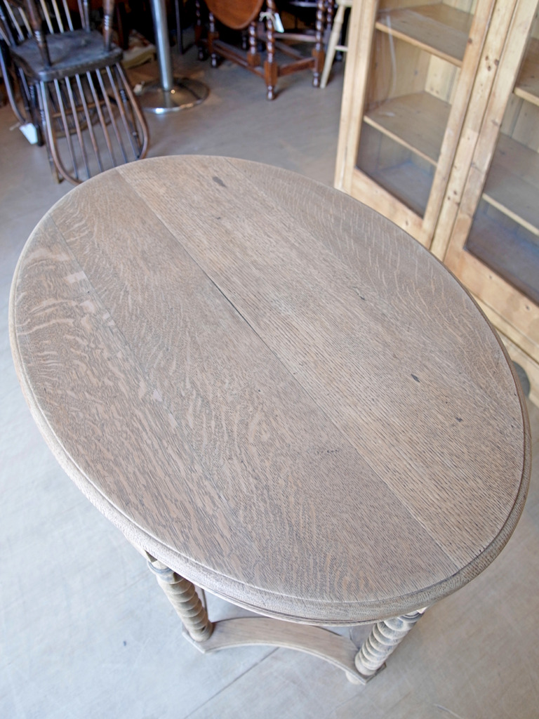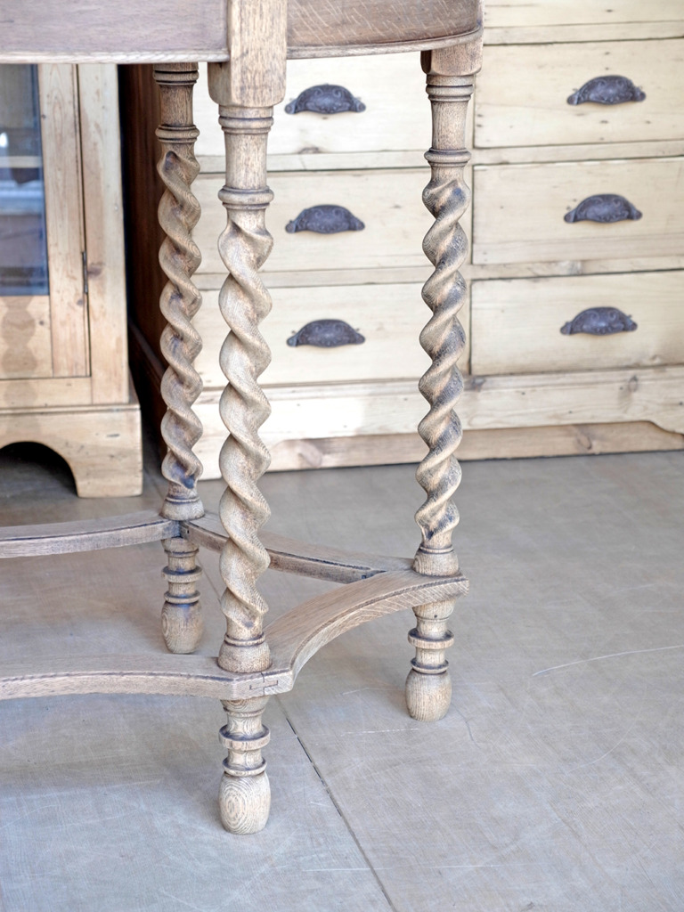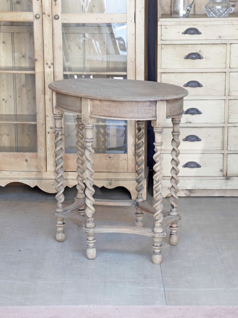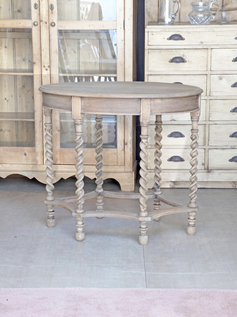 推定1930年代、イギリス製。 6本のツイストレッグが特徴的なサイドテーブルです。リビングや玄関などで花瓶を置いたり、テーブルランプを置いたりと、優雅な空間づくりに活躍するアイテムです。