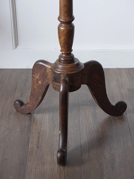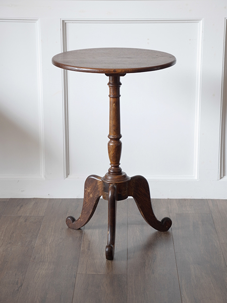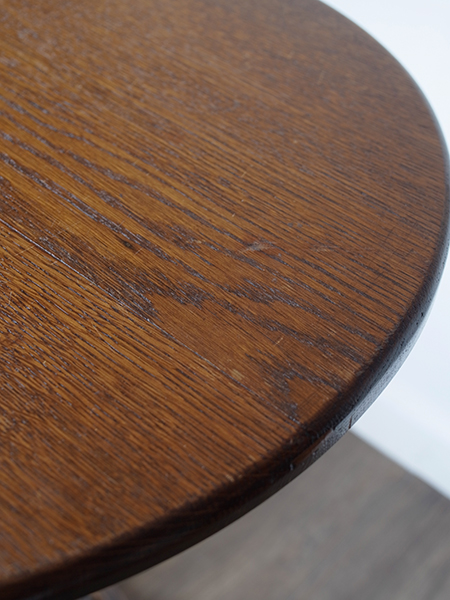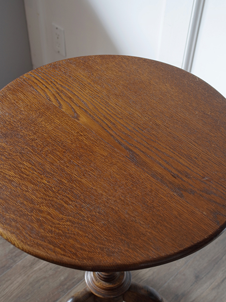 推定1940年代、イギリスアンティークオークサイドテーブルです。全体的に小ぶりなデザインなので、お部屋のコーナーや玄関などに置くのにおすすめです。状態も天板にキズなどなく良好です。