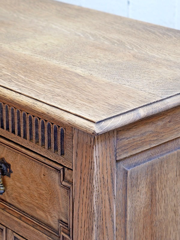 濃茶の塗装をストリップ(剥離)して木目をそのまま生かしたチェストです。色が明るくなったことで様々なインテリアスタイルに取り入れやすい雰囲気になりました。状態も良好です。