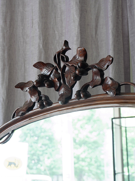 推定1900年代初頭。木の実をモチーフとした彫刻が特徴的な