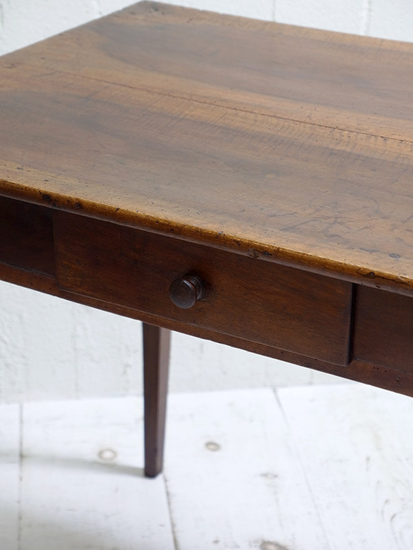 推定1900年代初頭。無垢のウォルナット材を使用したフレンチスタイルのテーブルです。小ぶりなので2人用のダイニングテーブルやデスクとしてもお薦めです。