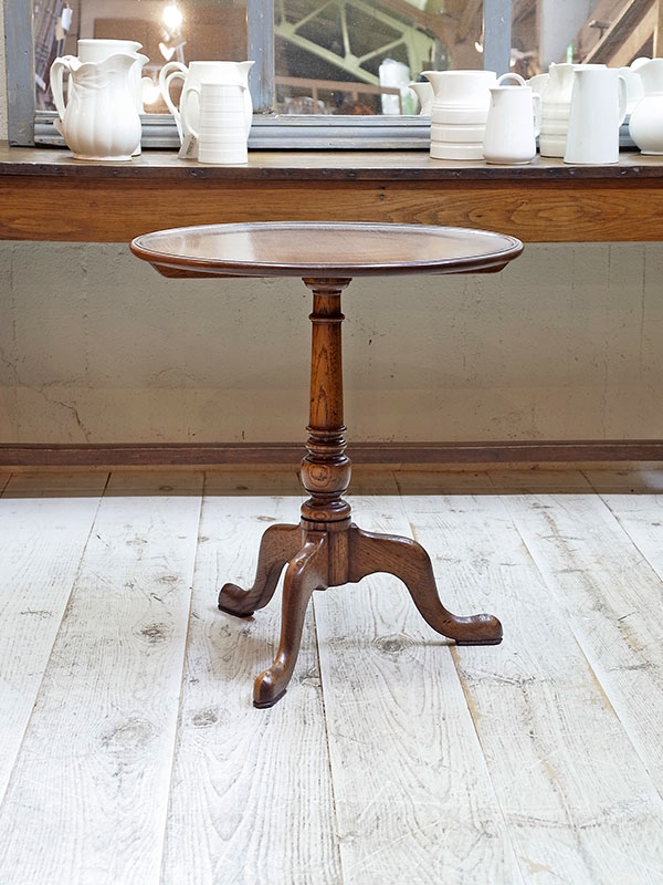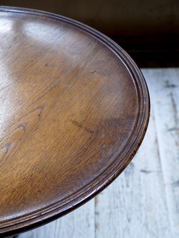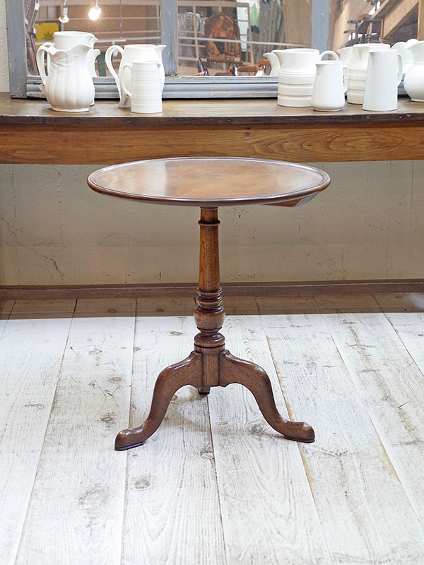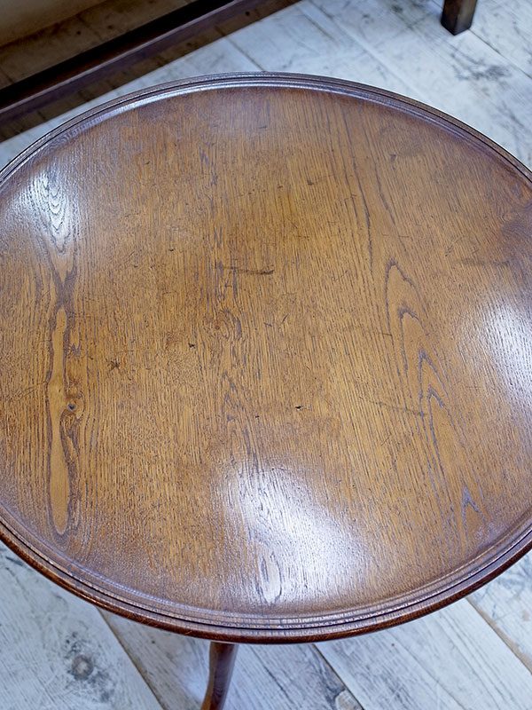 推定1920年代、イギリス製。 天板の木目がきれいな人気のラウンドテーブルです。 白金店にて展示中です。