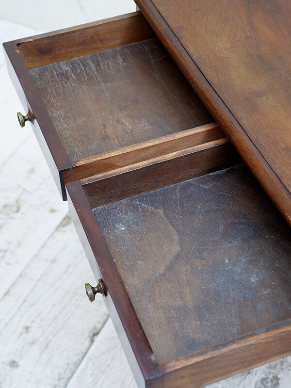 推定1920年代、イギリス製。 天板までの高さ72?。 引き出しの内寸 W240 D310 H45 ×2 上質なマホガニー材で作られたコンパクトなデスクです。