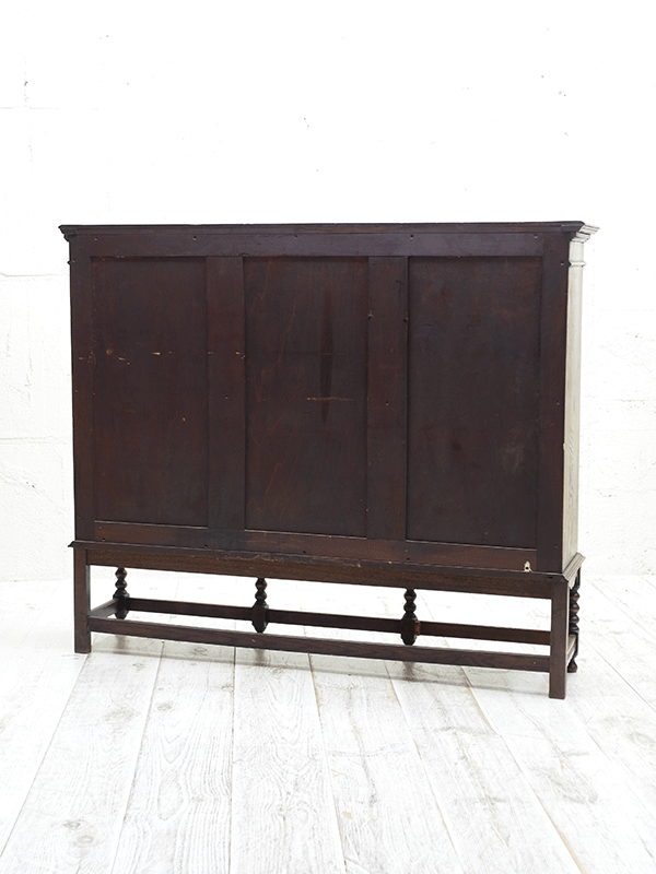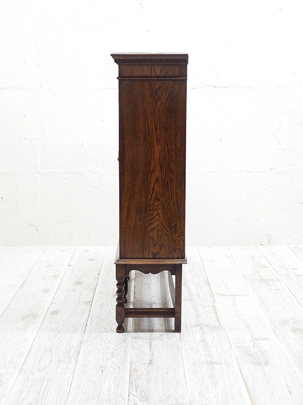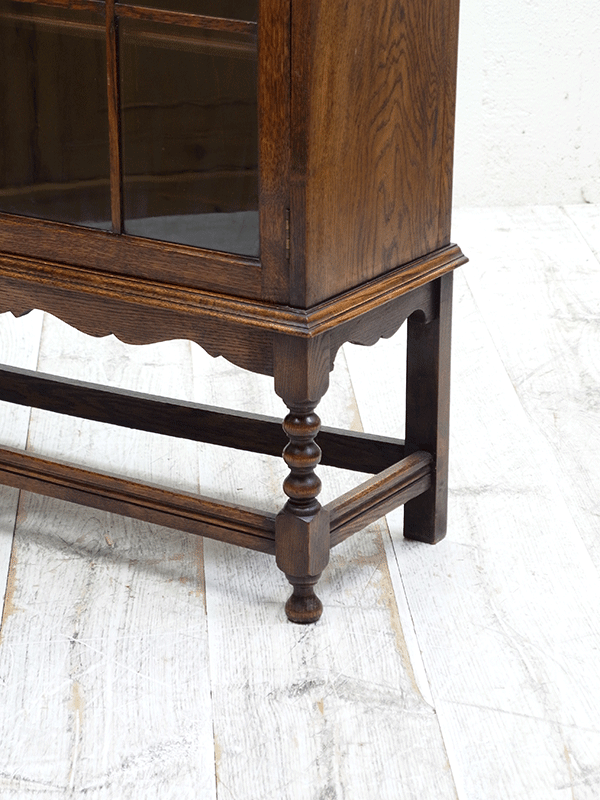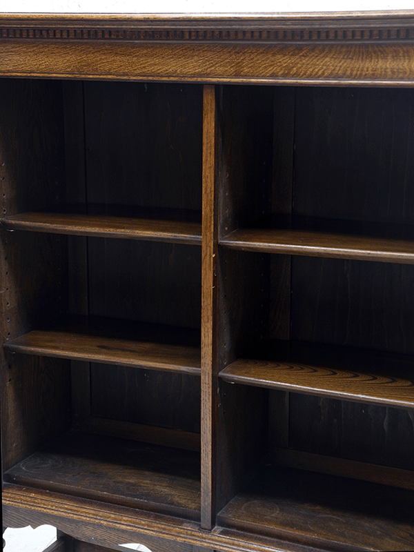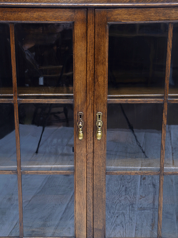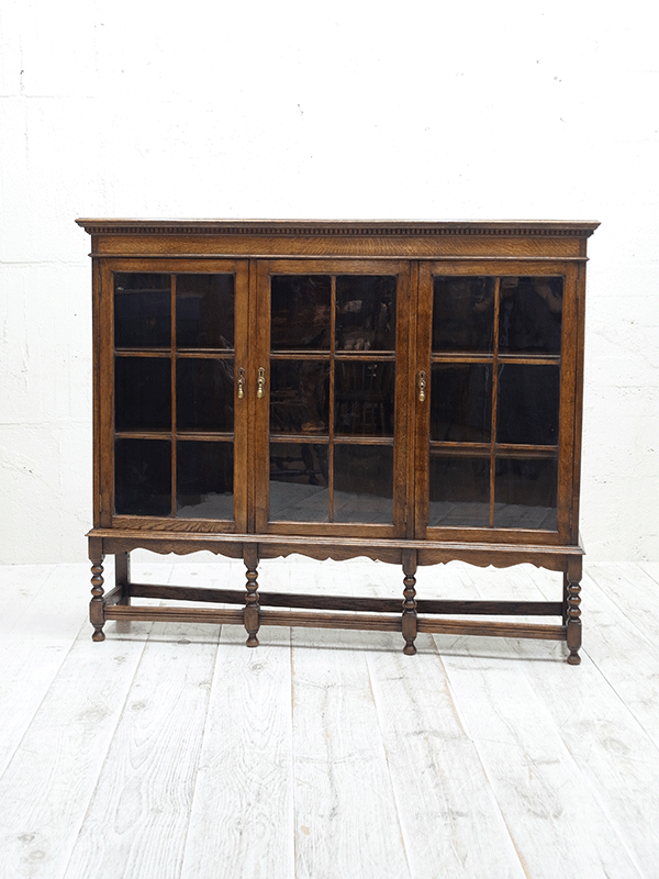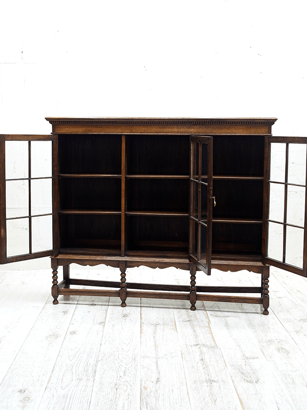 推定1920年代、イギリス製。人気の3連扉のブックケースです。棚板はすべて可動式です。ブックケースとしてはもちろん、食器棚としてもご使用いただけます。