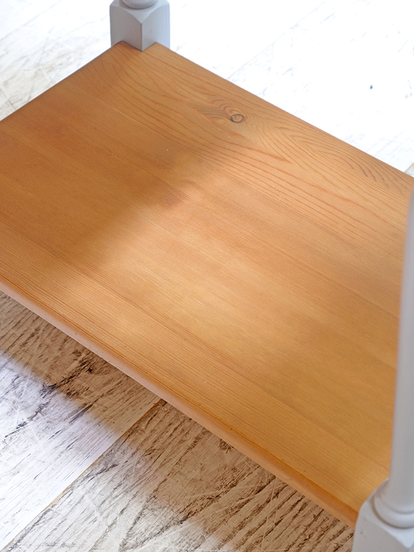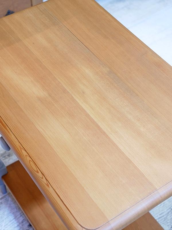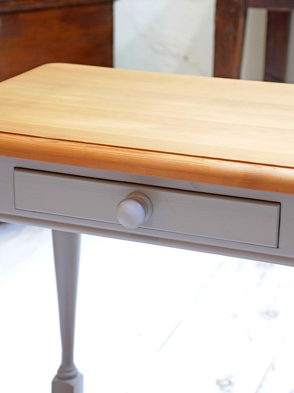 天板はパインカラーを残し、脚や引き出しはブルーグレーカラーにペイントしました。