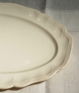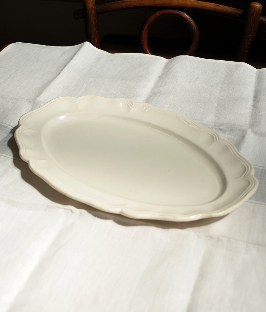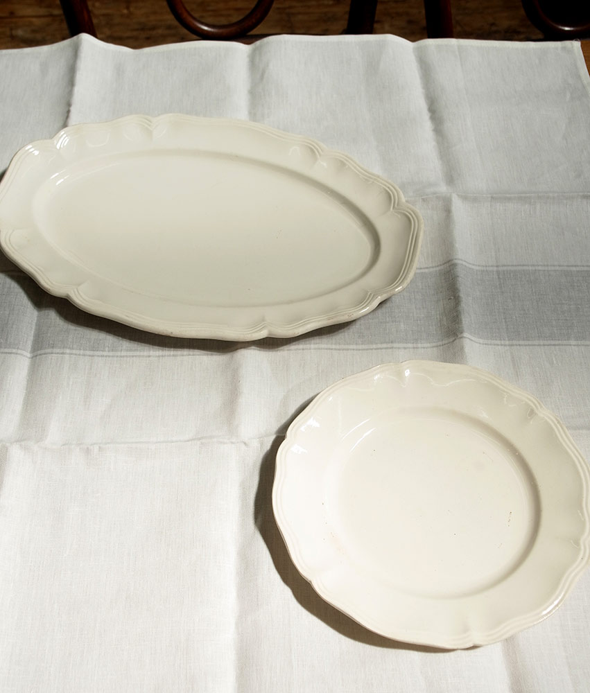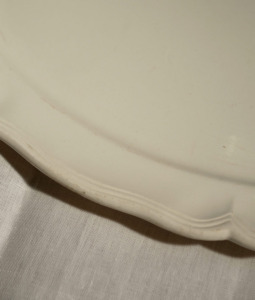 DIGOIN SARREGUMINESディゴワン サルグミンヌ窯1920年?1950年製造の花形リムのプレート。ほんのりとしたクリーム色が優しい印象のお皿。オードブルなどの盛り付けにもおすすめです。リム部分表面に欠け、全体的にシミ、鉄粉、小傷等がございます。