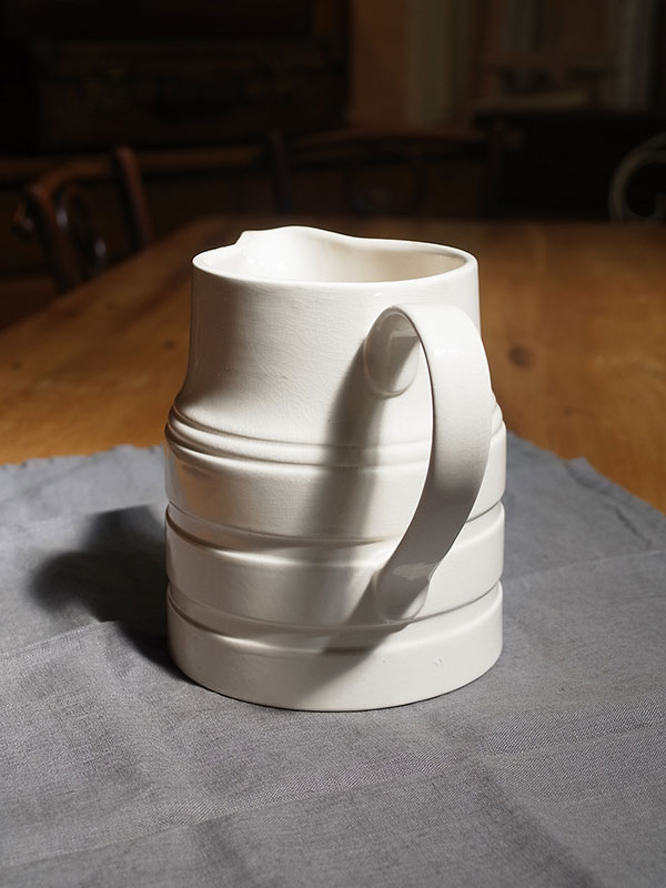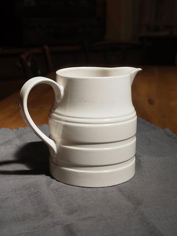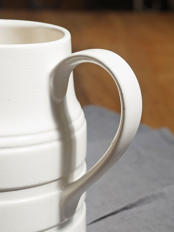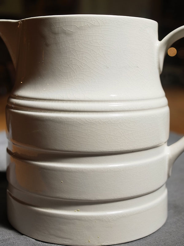 全体的に貫入が入っていますが、状態は良好です。もともとはミルクジャグとして使用されていたようですが、口が広いので花やグリーンを活けたり、キッチンツールを立てたりと様々な使い道があります。 似たデザインのジャグはこちら。