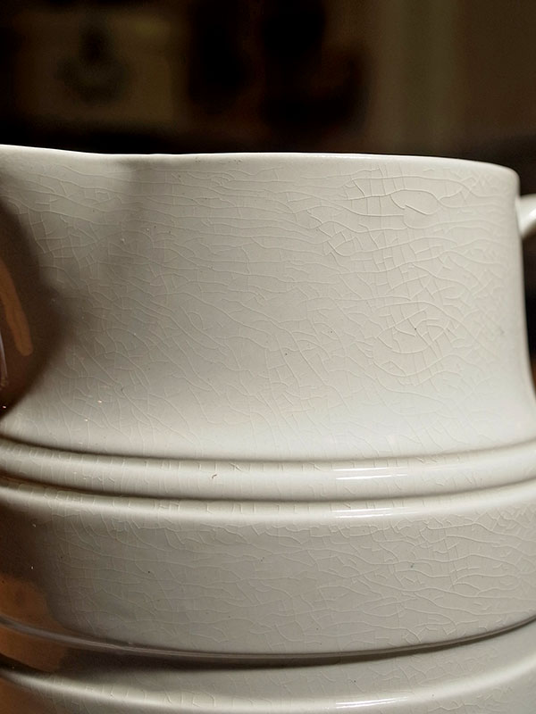 全体的に貫入が入っていますが、状態は良好です。もともとはミルクジャグとして使用されていたようですが、口が広いので花やグリーンを活けたり、キッチンツールを立てたりと様々な使い道があります。