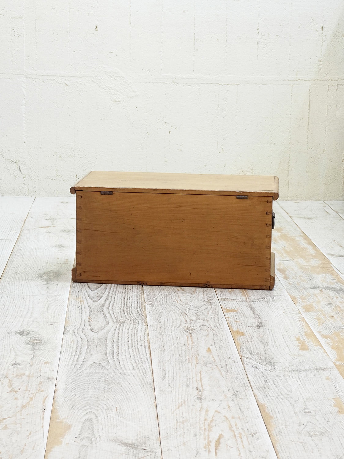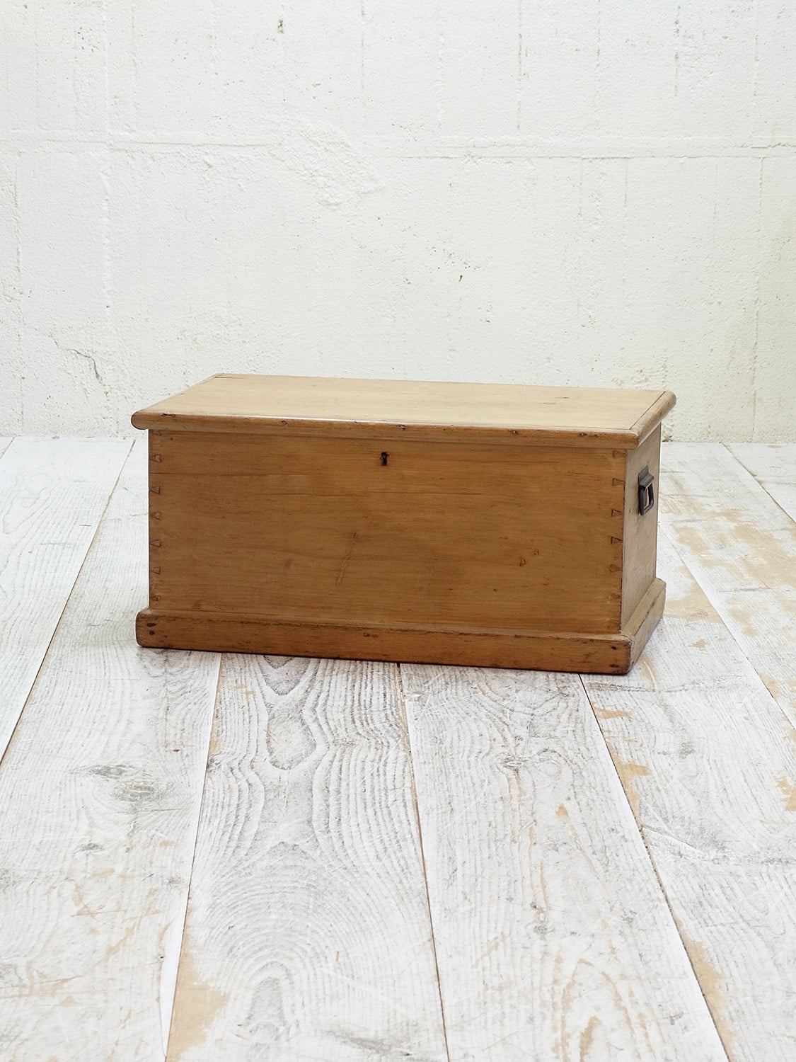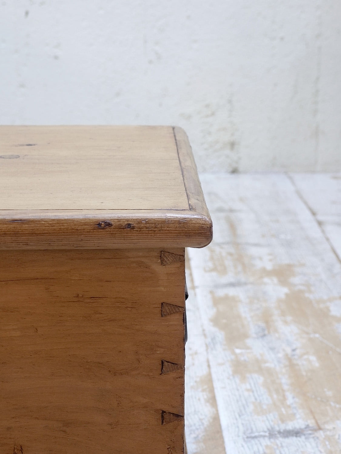 推定1930年代、イギリスアンティークパインボックスです。ブランケットやひざ掛けなどの収納に最適です。ソファの前に置いてコーヒーテーブルのように使用するのもおすすめです。今回の入荷分の中では1番小さいです。ボックス内寸W577 D350 H280mm。その他ボックスはこちらから。