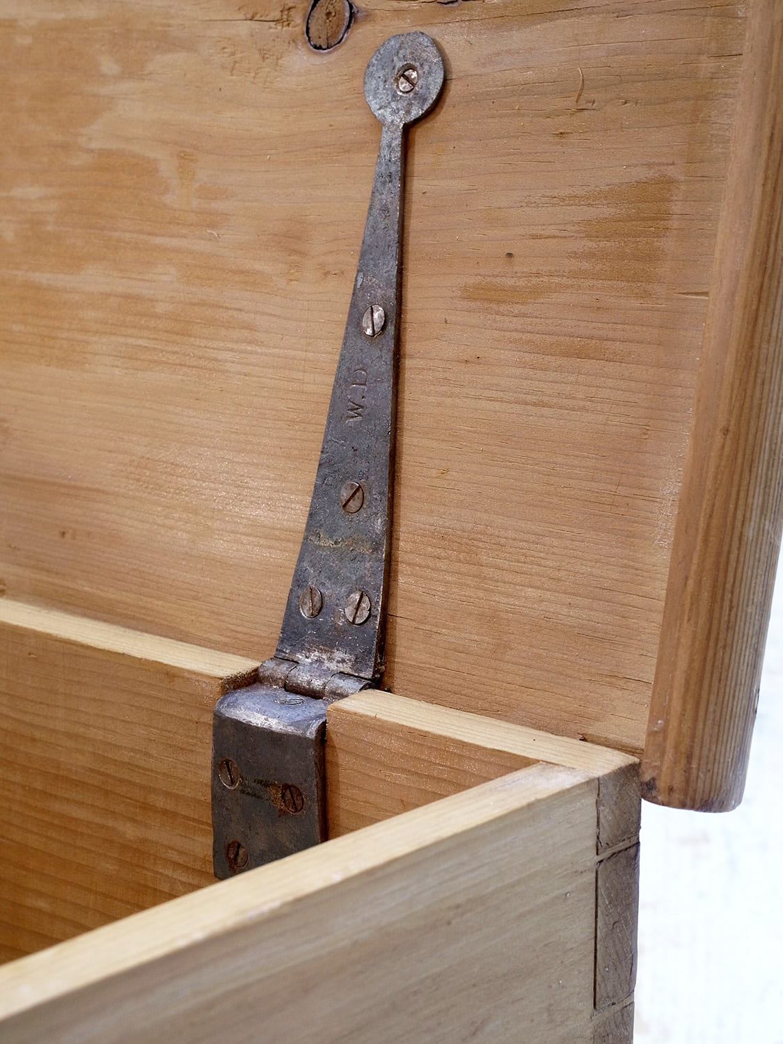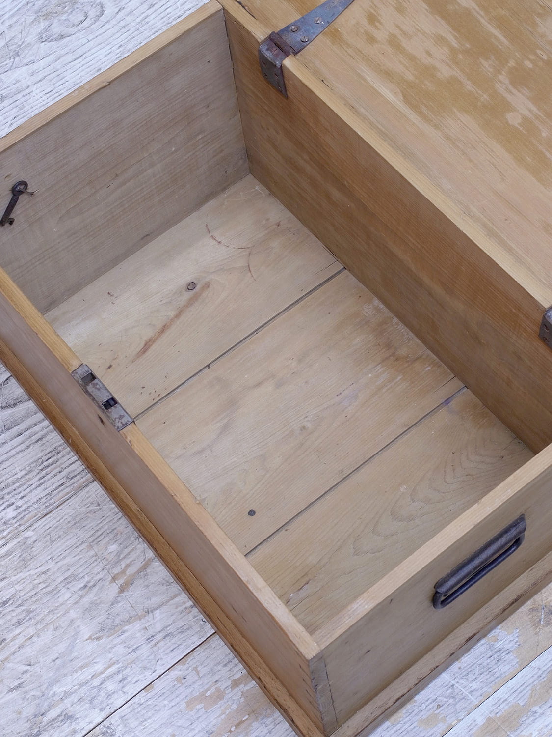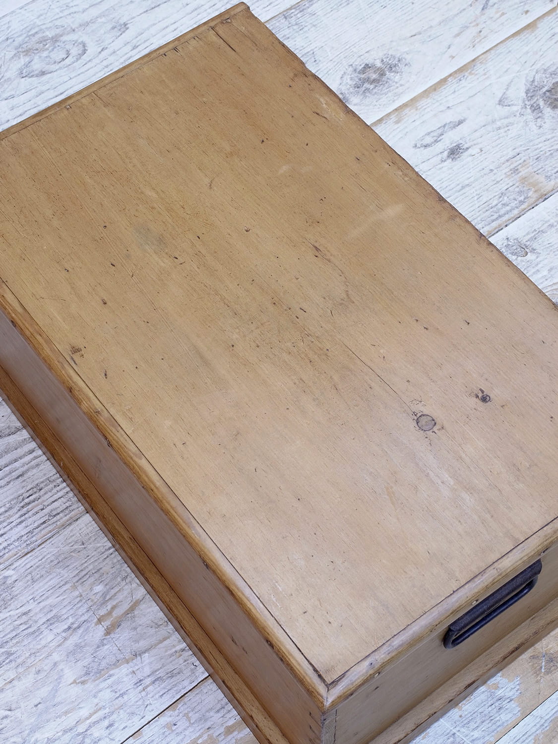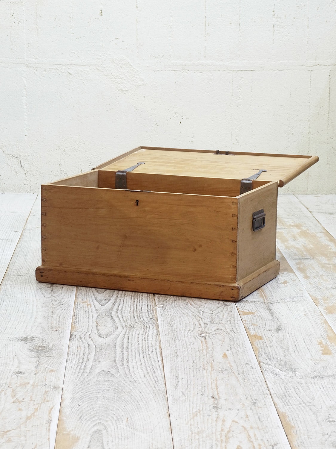 推定1930年代、イギリスアンティークパインボックスです。ブランケットやひざ掛けなどの収納に最適です。ソファの前に置いてコーヒーテーブルのように使用するのもおすすめです。今回の入荷分の中では1番小さいです。ボックス内寸W577 D350 H280mm。その他ボックスはこちらから。