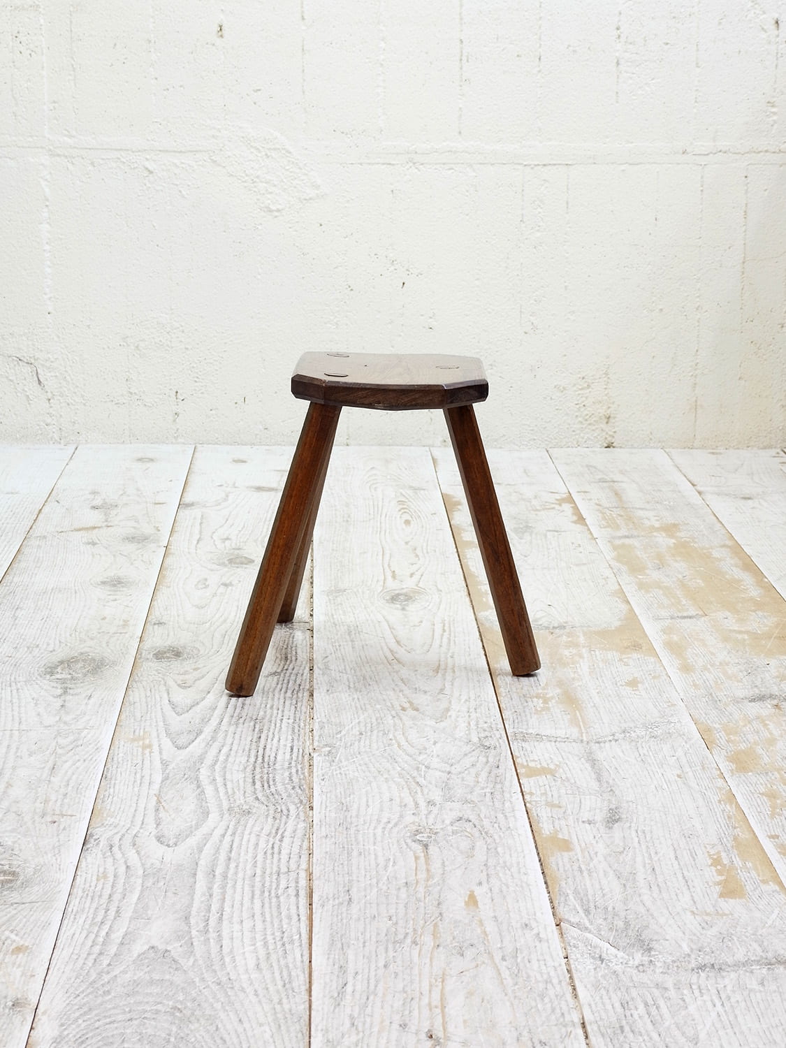 推定1930年代、イギリス製のアンティークスツールです。小ぶりなサイズなので玄関での一時的な物置としてや靴を履く際の腰掛椅子としてなどさまざまな用途でお使いいただけます。観葉植物やお花を飾り台としてのご使用もおすすめです。とても簡単に作られているように見えてみれば見るほどバランスが良く、天板の木の質の良さや脚も八角形になっていたり素敵なスツールです。その他スツールの一覧はこちらから。