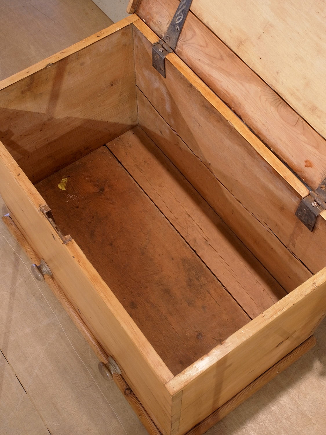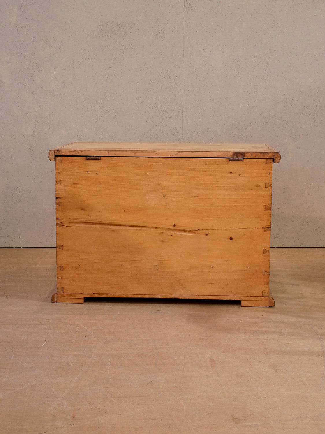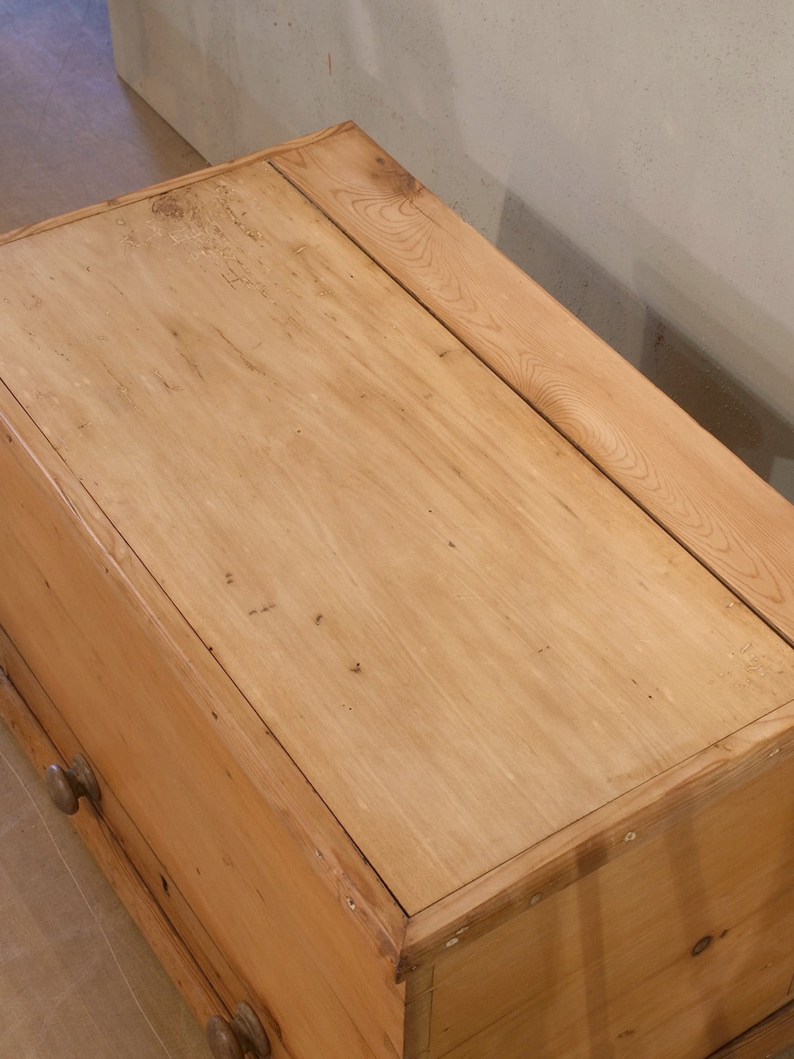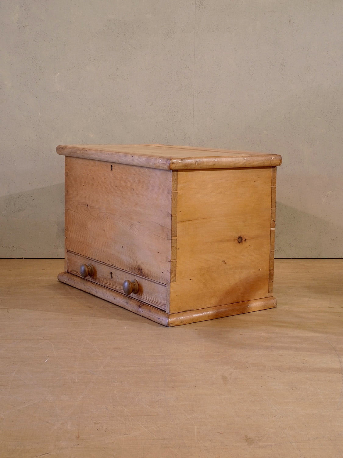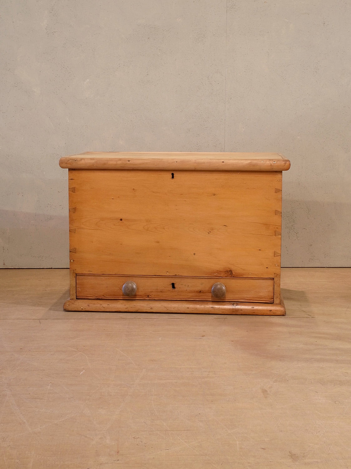 推定1930年代、イギリスアンティークパインボックスです。ブランケットやひざ掛けなどの収納に最適です。ソファの前に置いてコーヒーテーブルのように使用するのもおすすめです。引き出しの付いた珍しいタイプです。ボックス内寸W640 D365 H340mm。引き出し内寸 W615 D337 H68mm。その他ボックスはこちらから。