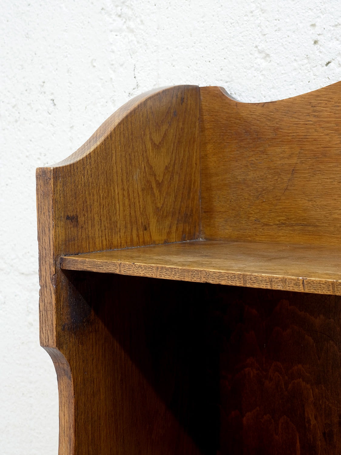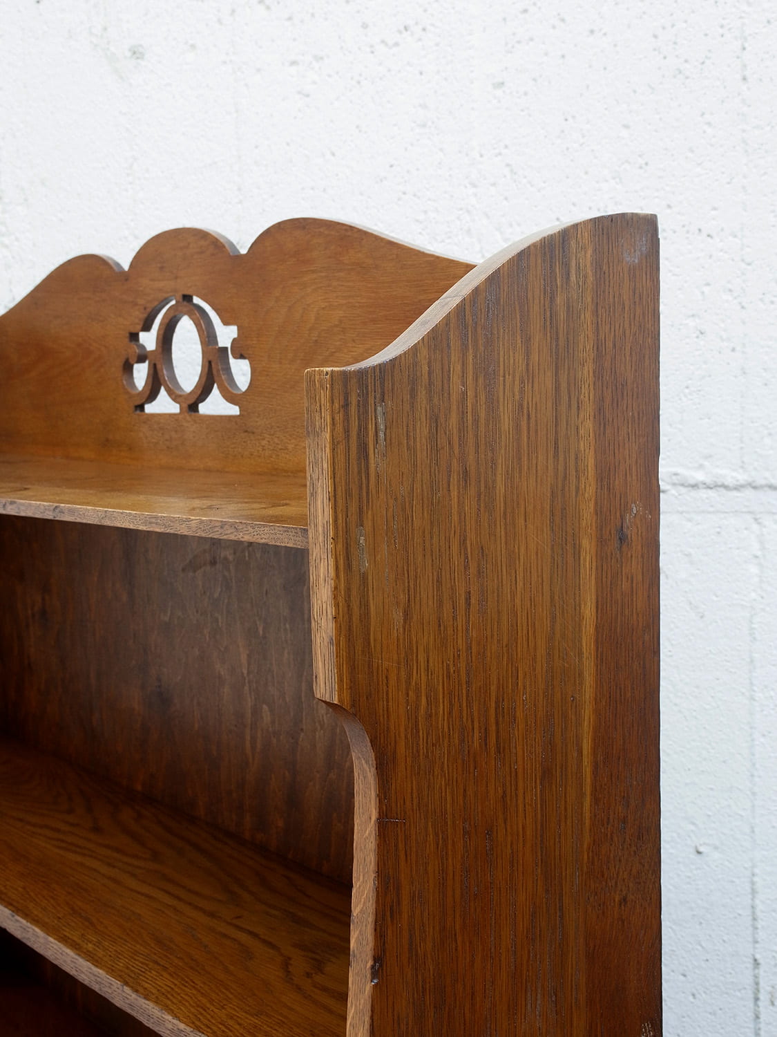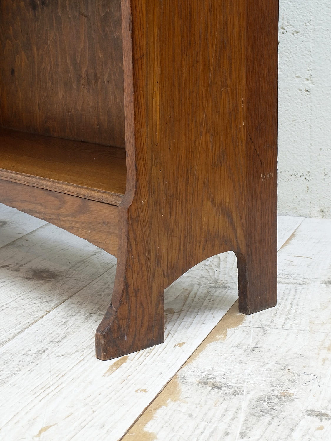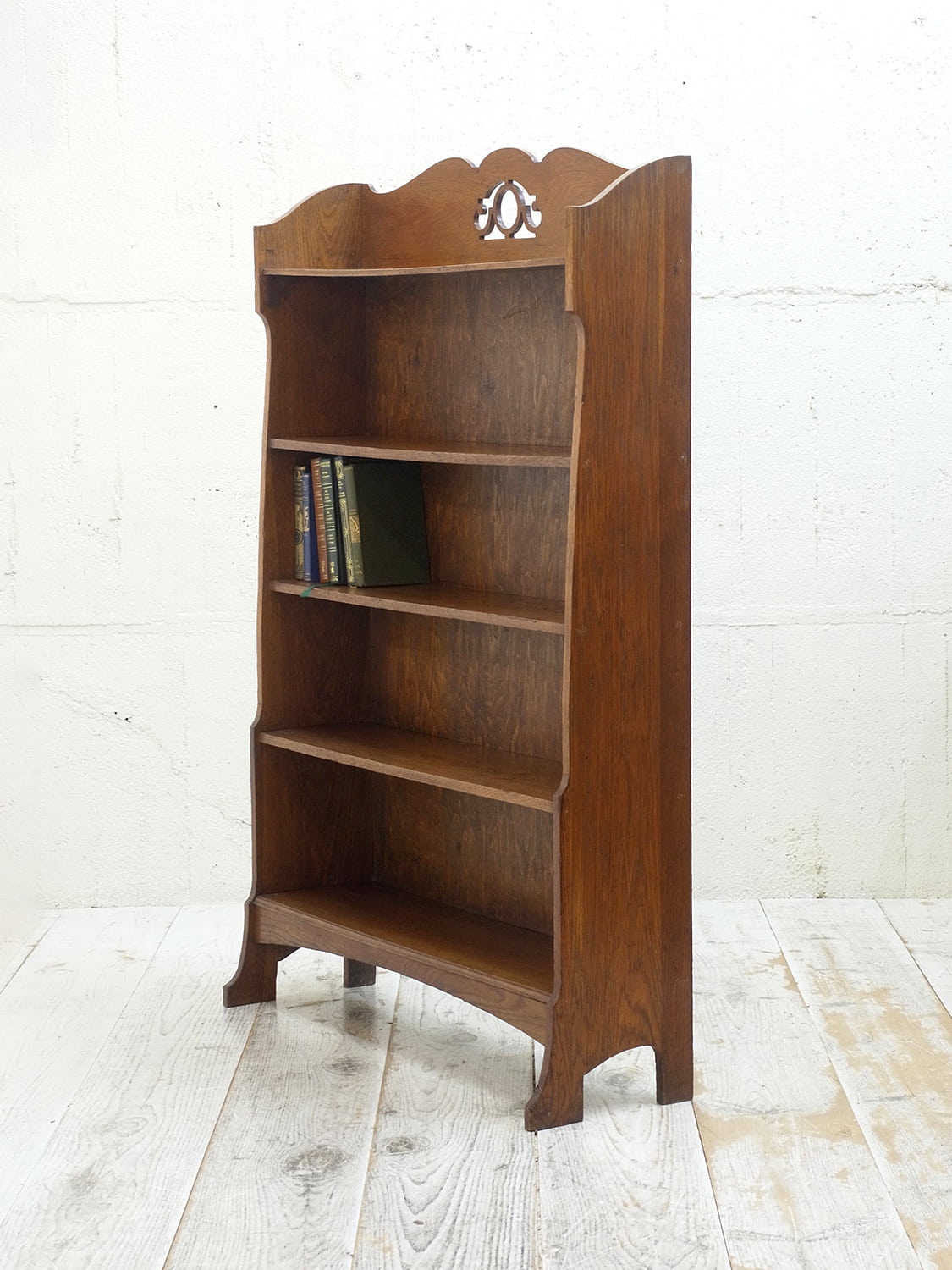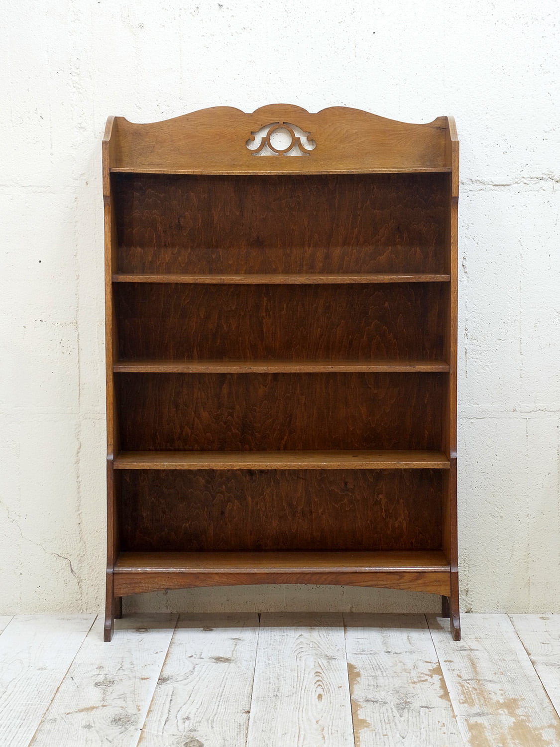 推定1930年代、イギリス製のアンティークオークブックシェルフです。シンプルなデザインで奥行が浅く大きいわけではないですが、収納量が豊富です。少し小ぶりでお部屋に取り入れやすいです。本棚としてのご使用はもちろんコレクションの飾り棚としてのご使用もおすすめです。棚板内寸 W863 D182-230 H175/H260/H214/H232/255mm。その他ブックシェルフはこちらから。