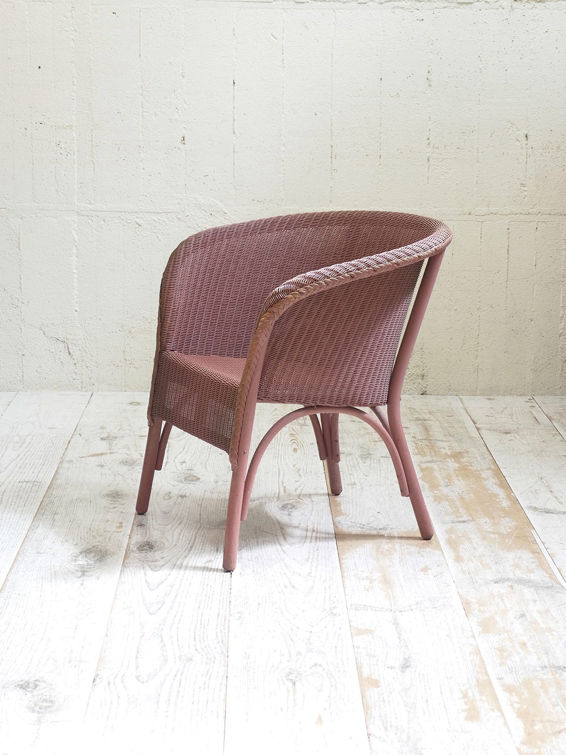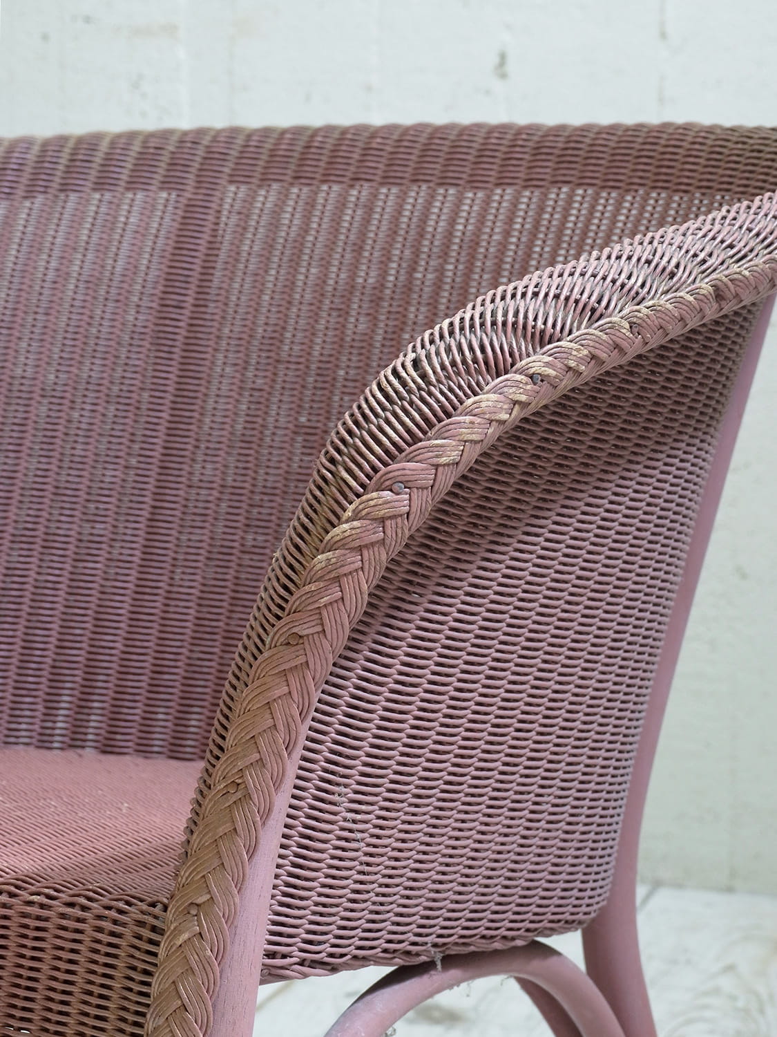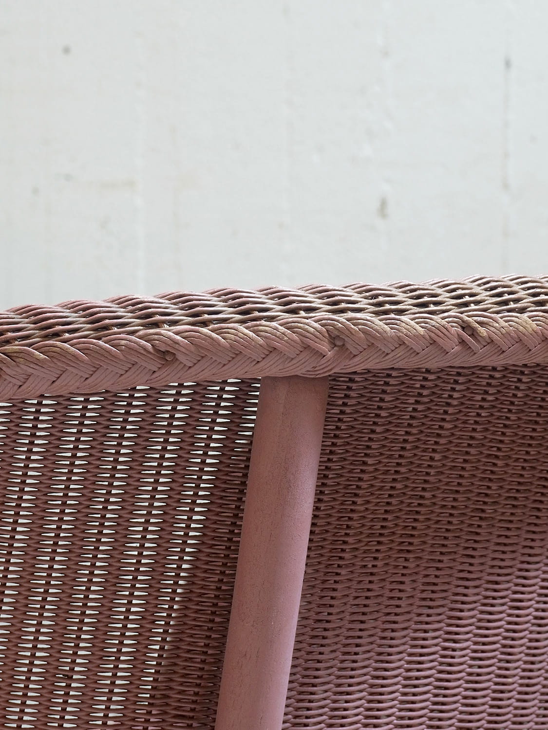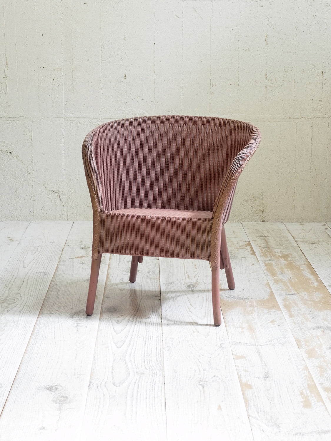 推定1940年代。イギリスアンティーク ロイドルームチェアです。ロイドルームとは、紙と「ワイヤー」を使って美しく繊細に編み上げられています。固くよりあわせて防水処理を施したクラフトペーパーをスチールワイヤーに巻きつけて編んでおり、折れたりヒビが入らないよう耐久性があります。コンパクトなサイズで水にも強いので、庭やベランダなどでのご使用もお薦めです。座れば座るほどワイヤーがご自身の形にフィットしてどんどん座り心地が良くなります。くすんだピンクカラーがアンティークならではの色味です。座面までの高さは37.5cm。その他のロイドルームはこちらから。