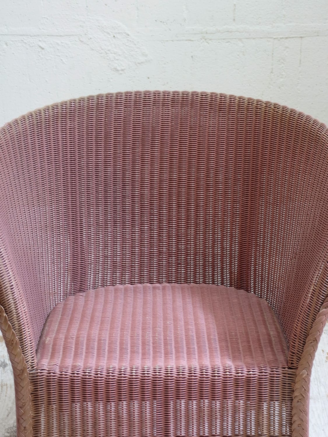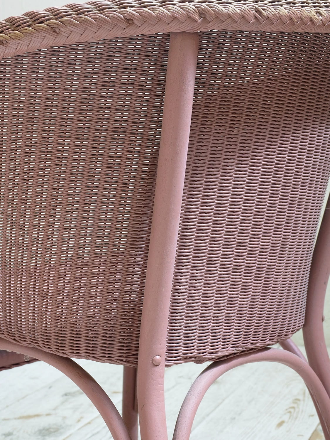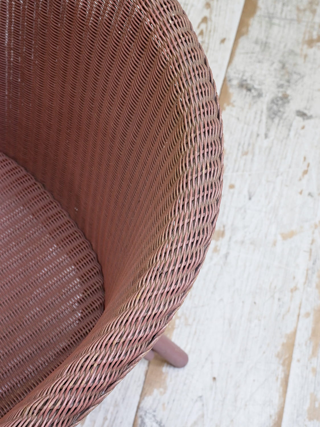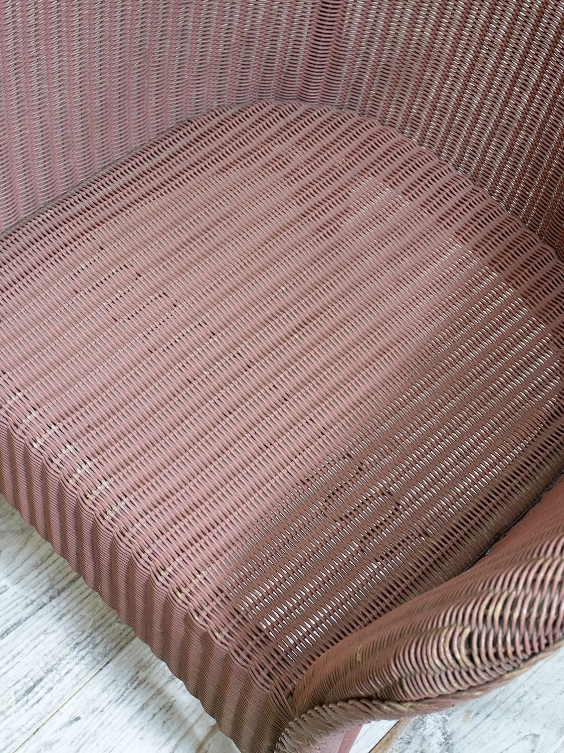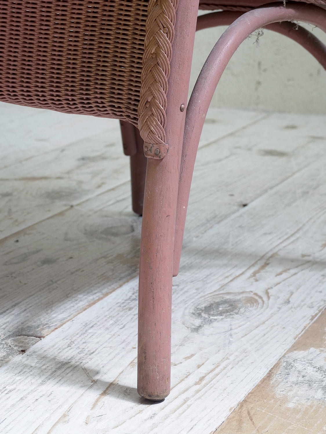 推定1940年代。イギリスアンティーク ロイドルームチェアです。ロイドルームとは、紙と「ワイヤー」を使って美しく繊細に編み上げられています。固くよりあわせて防水処理を施したクラフトペーパーをスチールワイヤーに巻きつけて編んでおり、折れたりヒビが入らないよう耐久性があります。コンパクトなサイズで水にも強いので、庭やベランダなどでのご使用もお薦めです。座れば座るほどワイヤーがご自身の形にフィットしてどんどん座り心地が良くなります。くすんだピンクカラーがアンティークならではの色味です。座面までの高さは37.5cm。その他のロイドルームはこちらから。