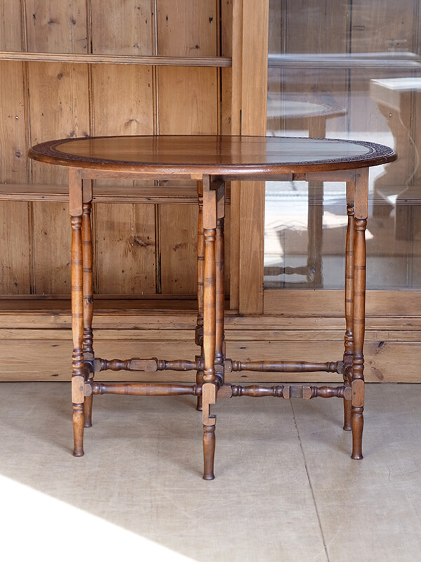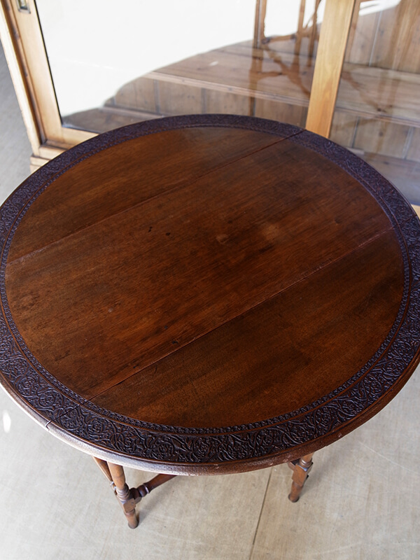 当時はティーテーブルとして使用されていたことが多く、天板の縁周りに繊細な装飾がある美しいテーブルです。